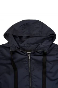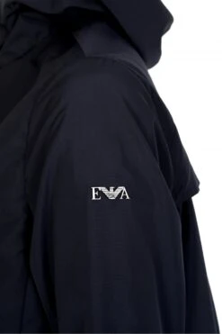 Brought to you from Emporio Armani this hooded jacket features a central zip fastening two zip slanted pockets. The Emporio Armani logo is situated in metal hardware on the left hand sleeve. This contemporary outwear jacket is styled with a drawstring hood and a lapel at the back.