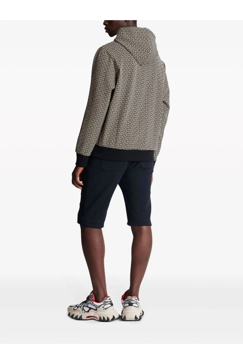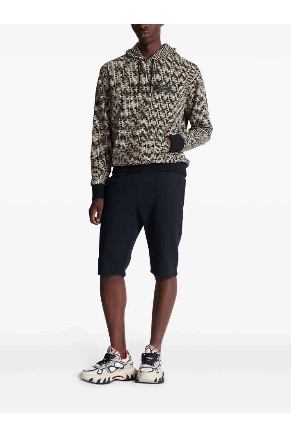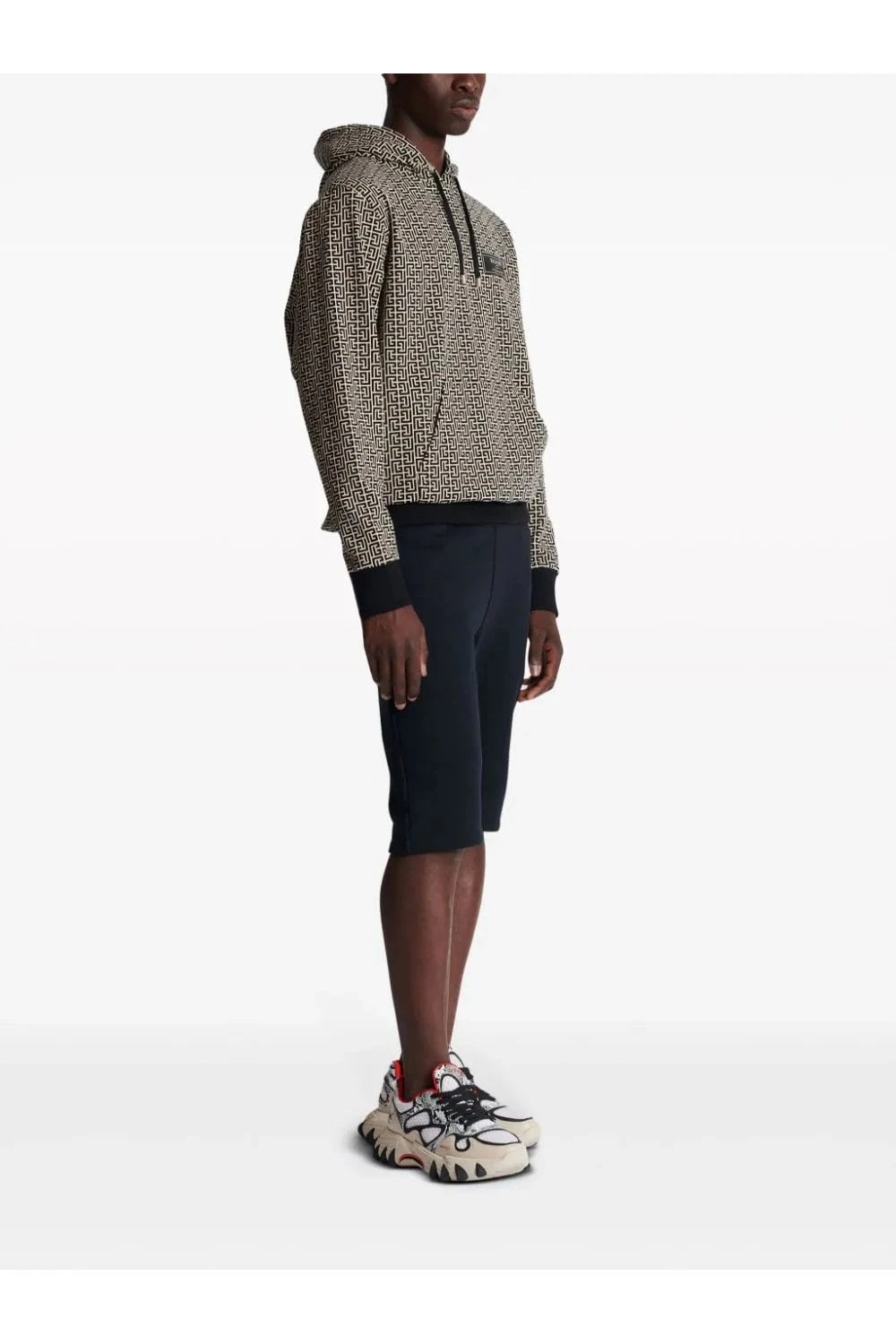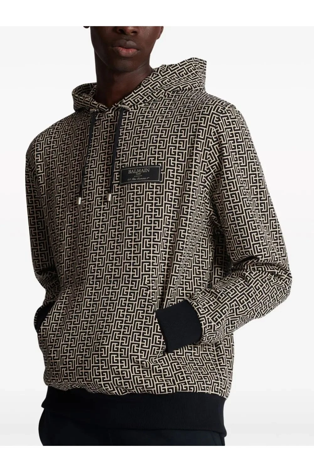 Brought to you by Balmain this logo-applique hoodie features long sleeves, a drawstring hood, front pouch pocket and a straight hem. Finished off with the monogram jacquard and a woven Balmain logo label