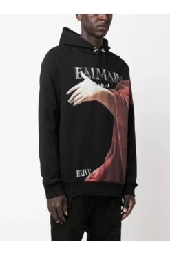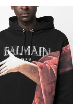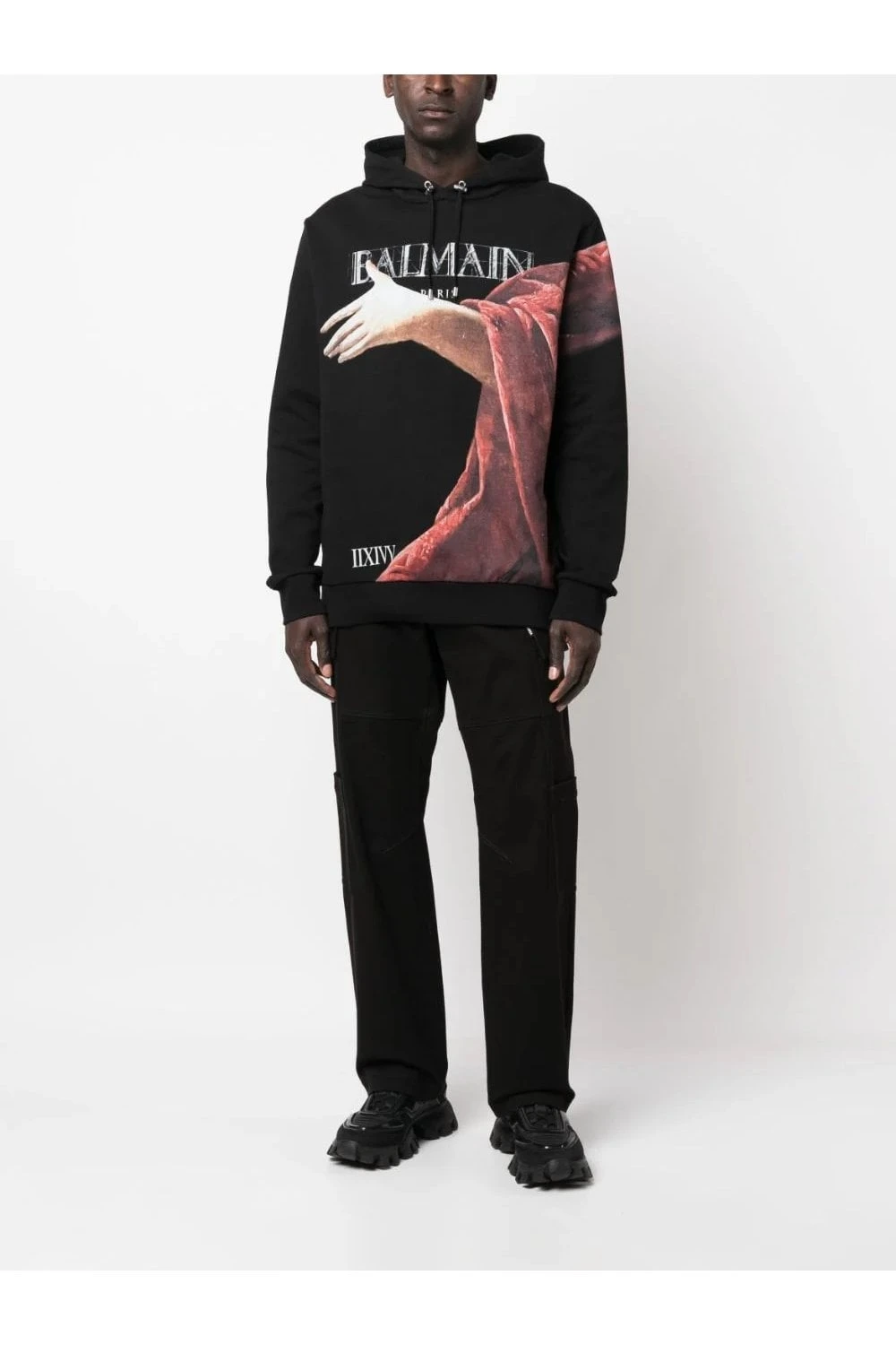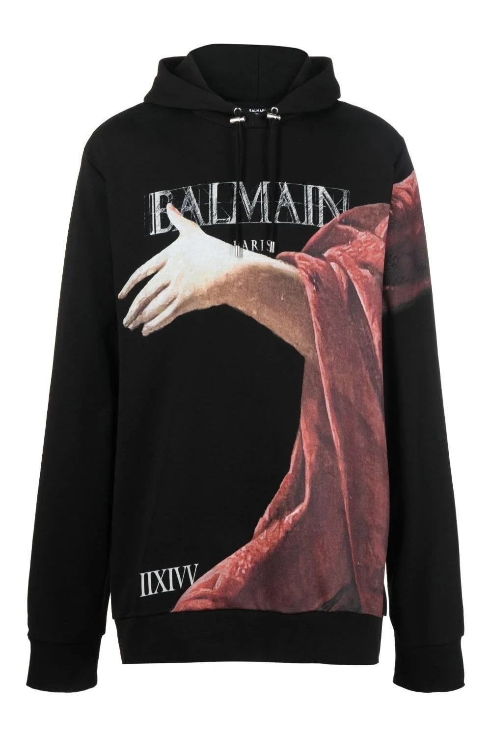 Crafted from cotton in Italy, this relaxed hoodie by Balmain is characterised by its status graphic print which can be found throughout the brand’s SS23 collection
