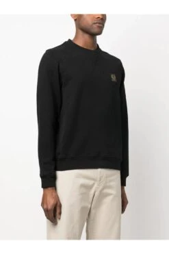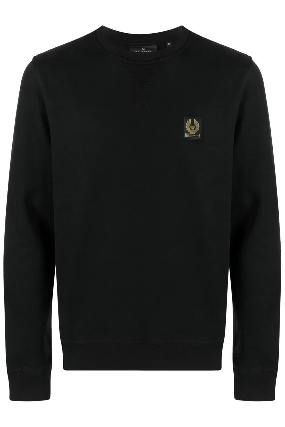 Logo-patch cotton shirt from BELSTAFF featuring black, cotton, logo patch at the sleeves, classic collar, button fastening, two chest flap pockets, long sleeves, elasticated cuffs and straight hem