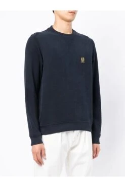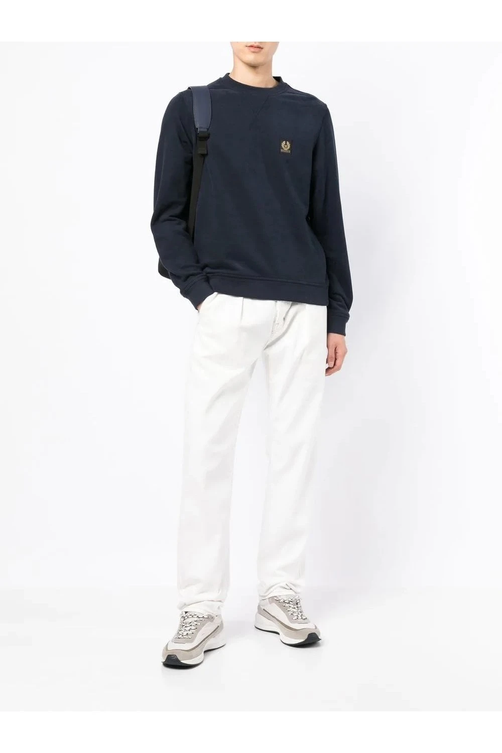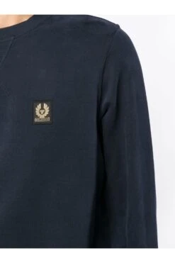 Logo-patch cotton shirt from BELSTAFF featuring black, cotton, logo patch at the sleeves, classic collar, button fastening, two chest flap pockets, long sleeves, elasticated cuffs and straight hem