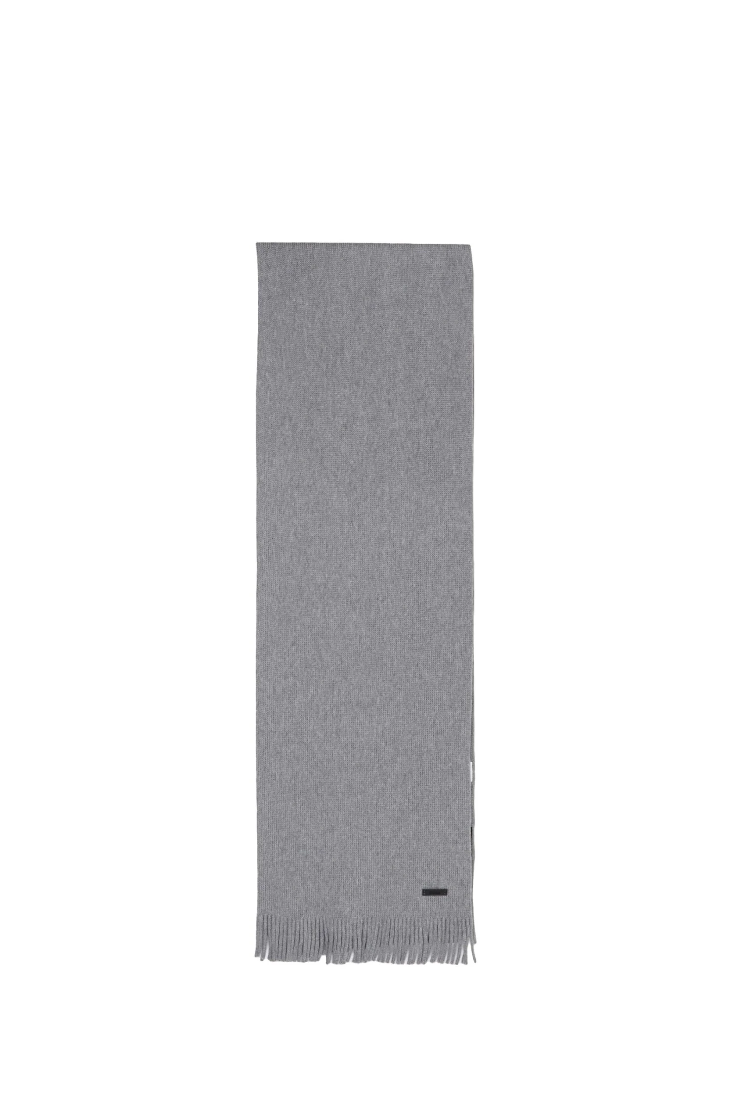 A versatile scarf by BOSS, knitted with a raschel structure and featuring fringing and a branded faux-leather plaque. This product is made with responsibly sourced and certified wool