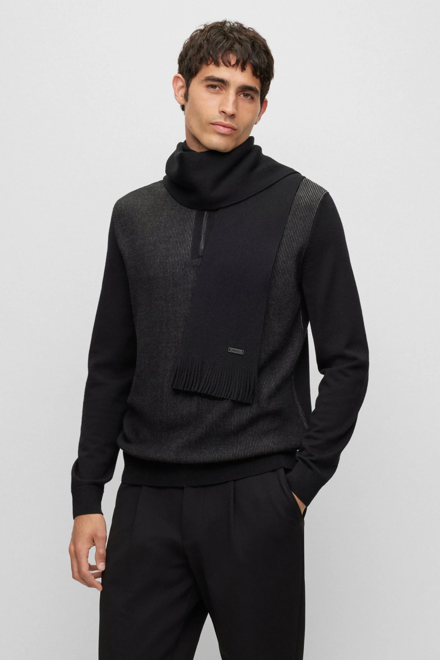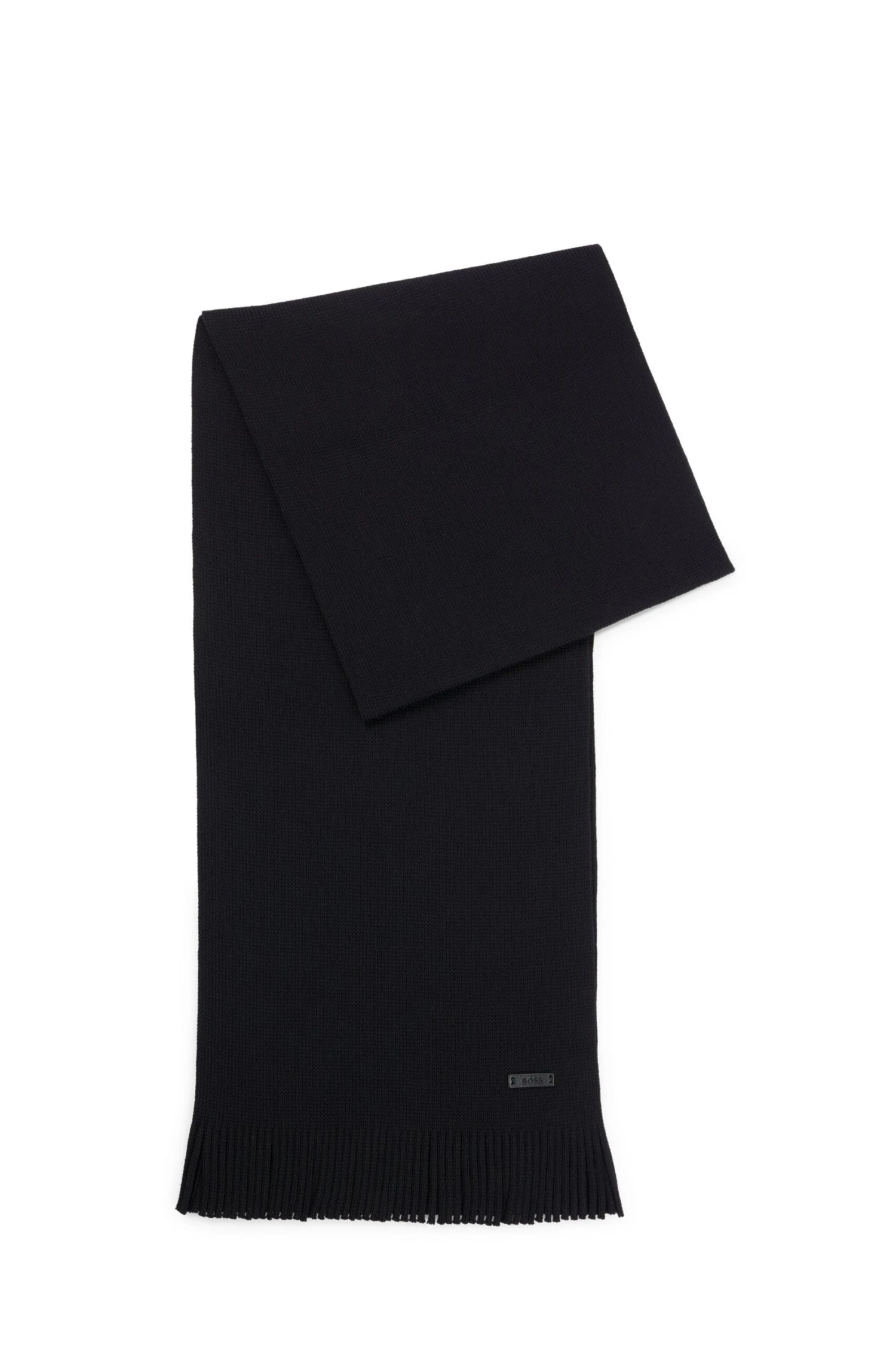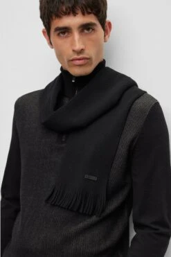 A versatile scarf by BOSS, knitted with a raschel structure and featuring fringing and a branded faux-leather plaque. This product is made with responsibly sourced and certified wool