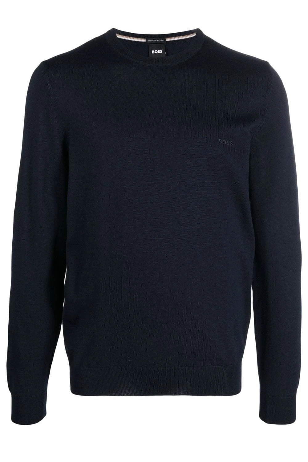 Botto-L virgin wool jumper from BOSS featuring sand beige, virgin wool, knitted construction, embroidered logo at the chest, ribbed edge, crew neck, long sleeves and straight hem.