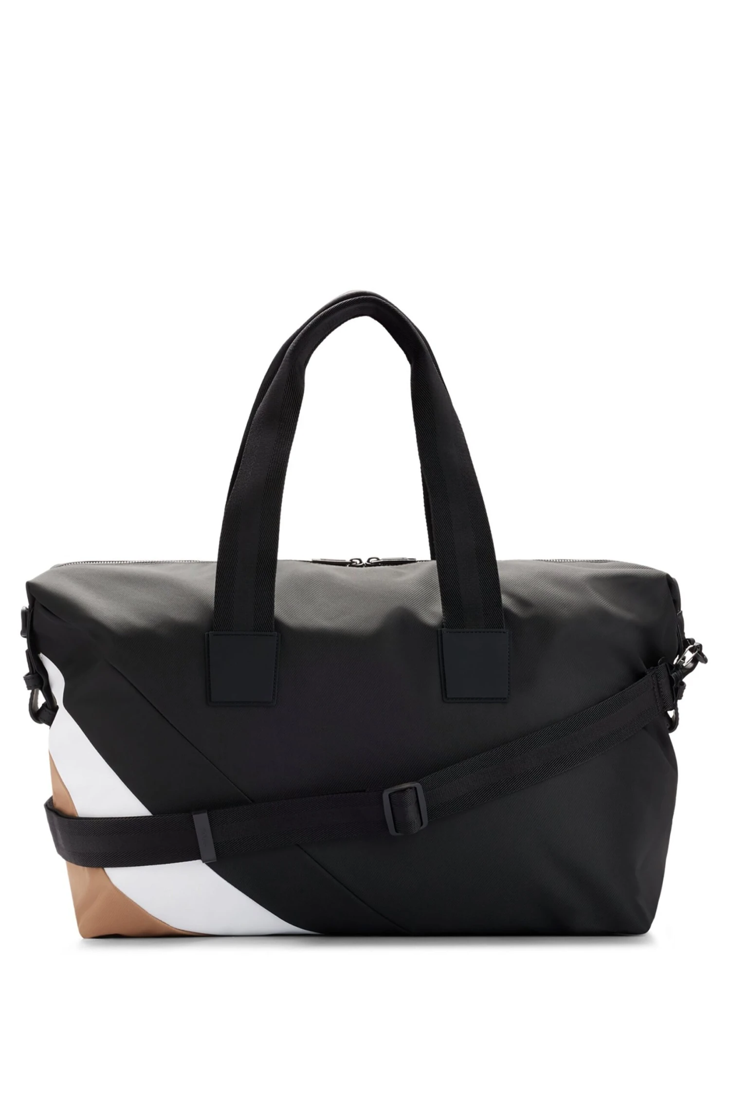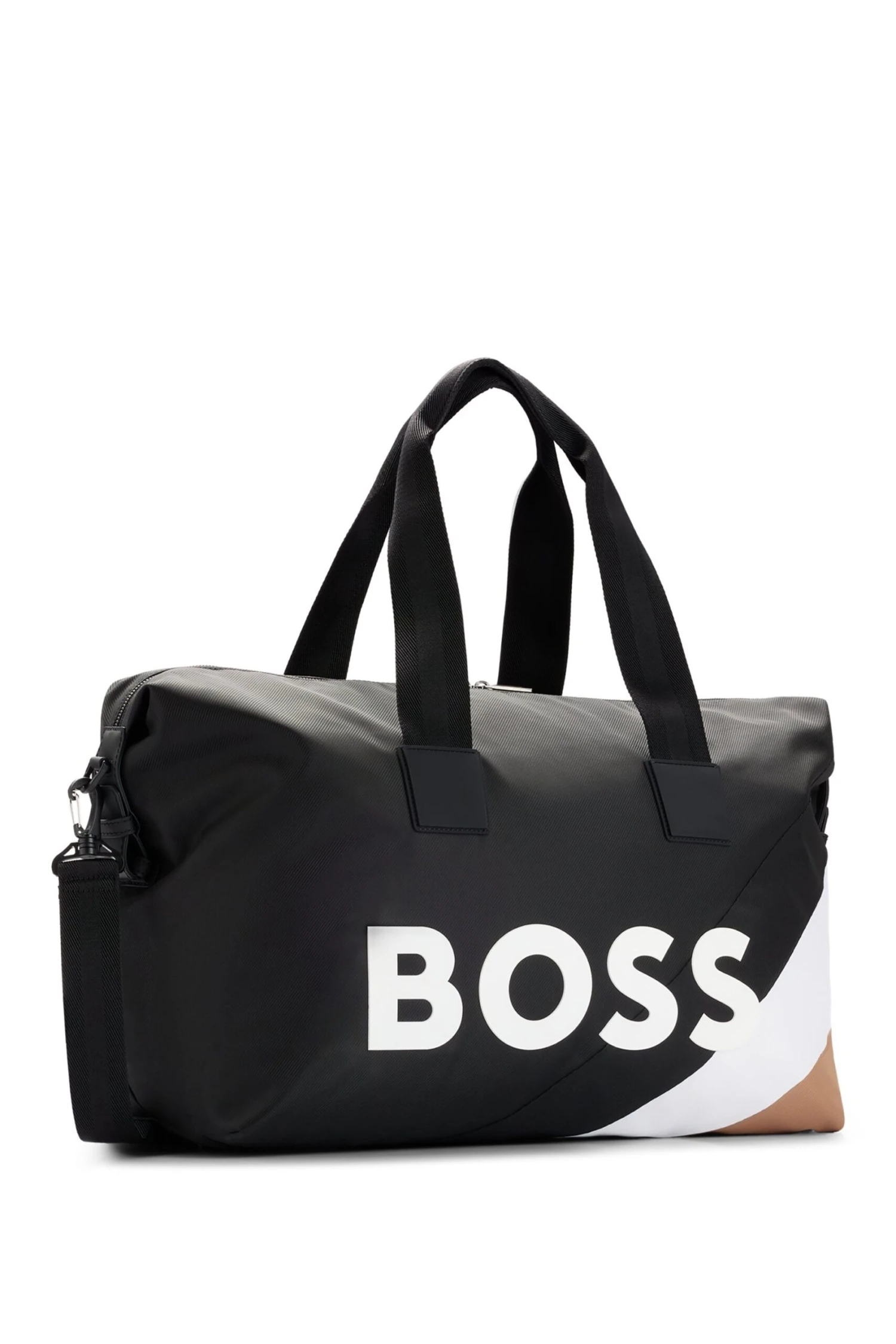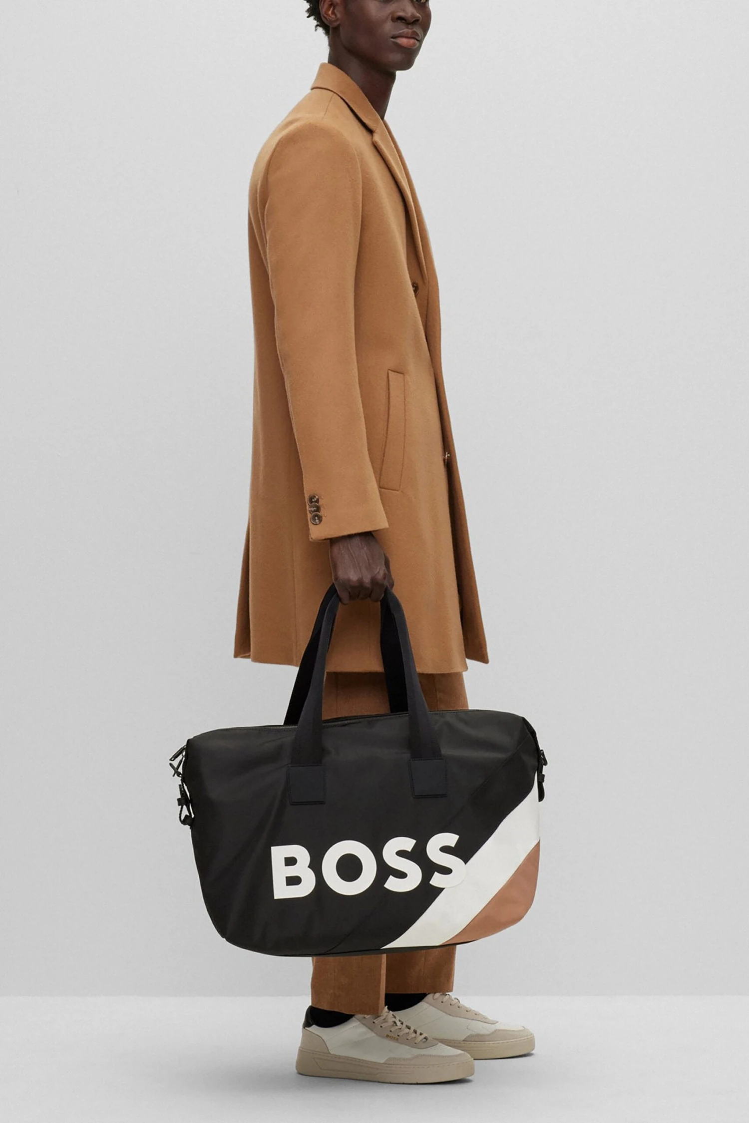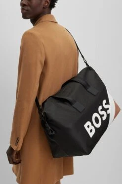A sporty holdall by BOSS, desgined in structured material with a zipped shoe compartment, signature stripe and large contrast logo. Part of the dynamic BOSS x Matteo Berrettini capsule collection, co-created by the Italian professional tennis player