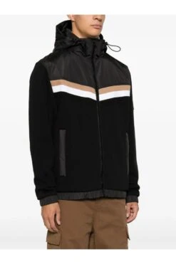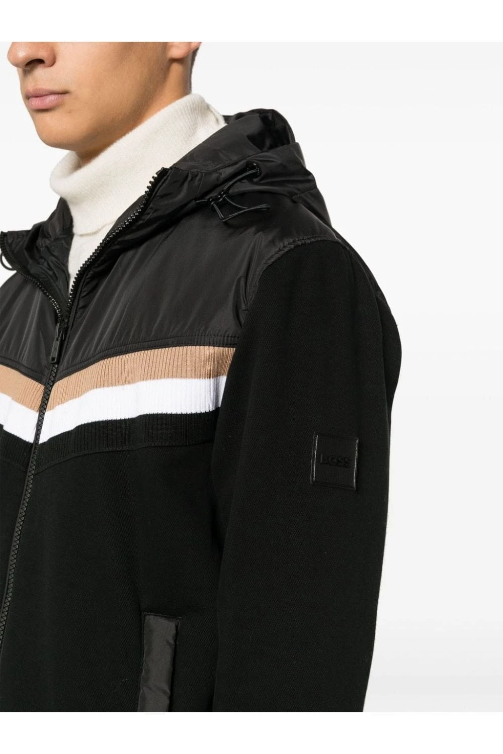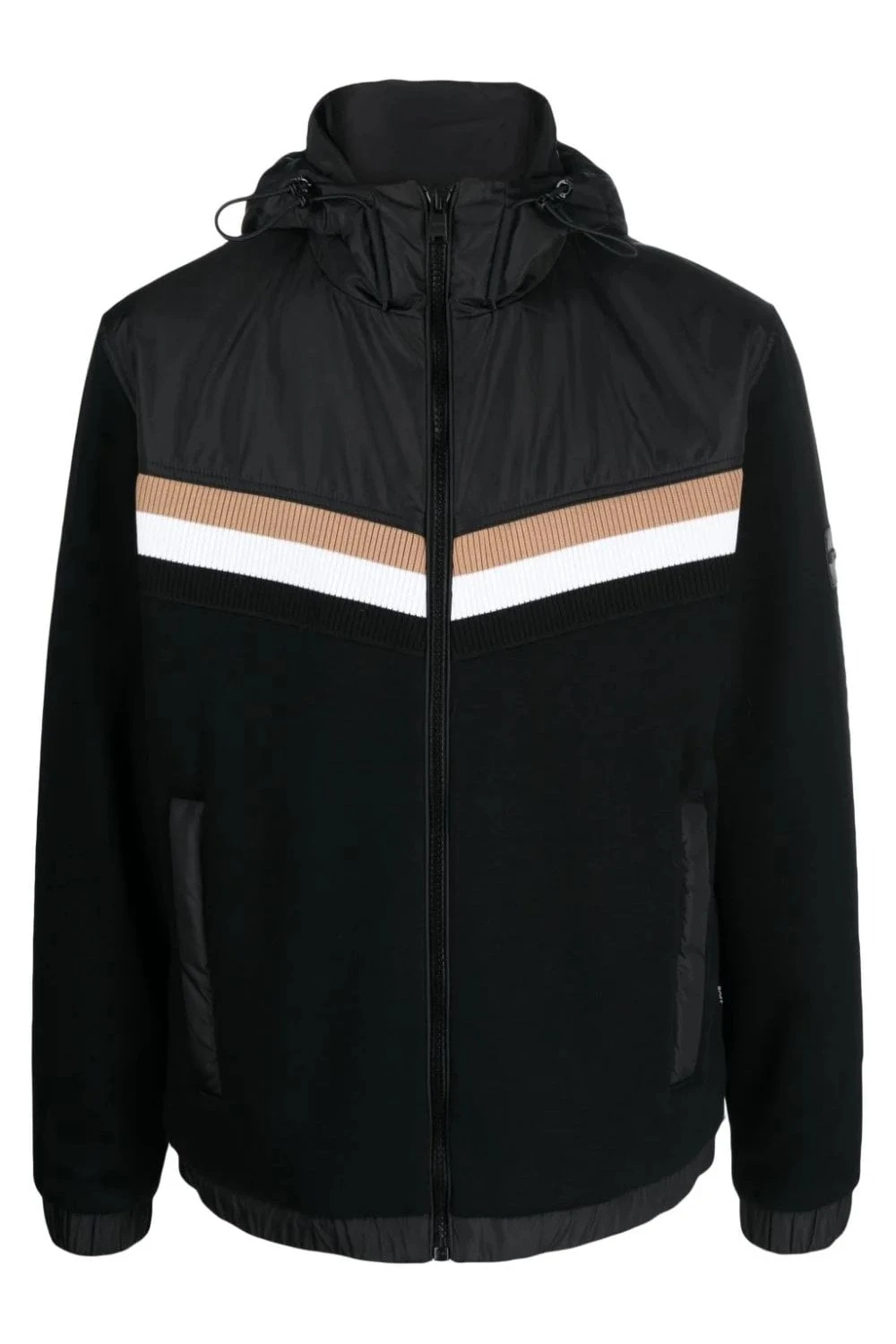 A zip-up hooded sweatshirt by BOSS Menswear, crafted in mixed materials including a mercerised cotton blend and detailed with signature stripes