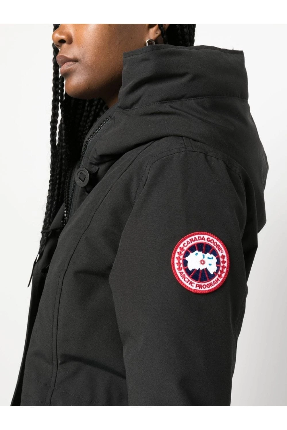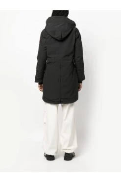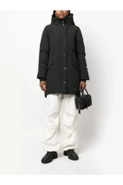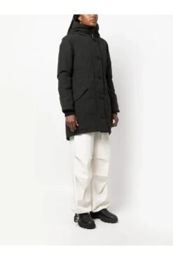 Reputed for its 50-plus years creating outerwear to withstand harsh elements, Canada Goose continues its legacy with this black Rossclair coat. It’s crafted from the brand’s innovative water-resistant Arctic Tech fabric then padded with lightweight and insulating down. An interior drawstring waist prevents draft while tricot and fleece linings at the funnel neck and pockets ensure comfort and warmth