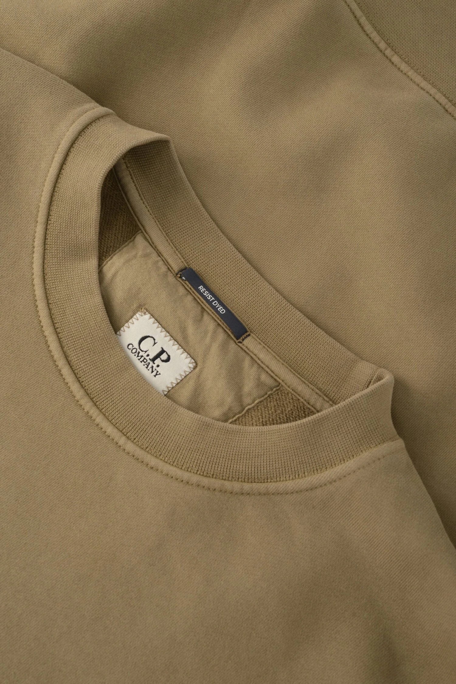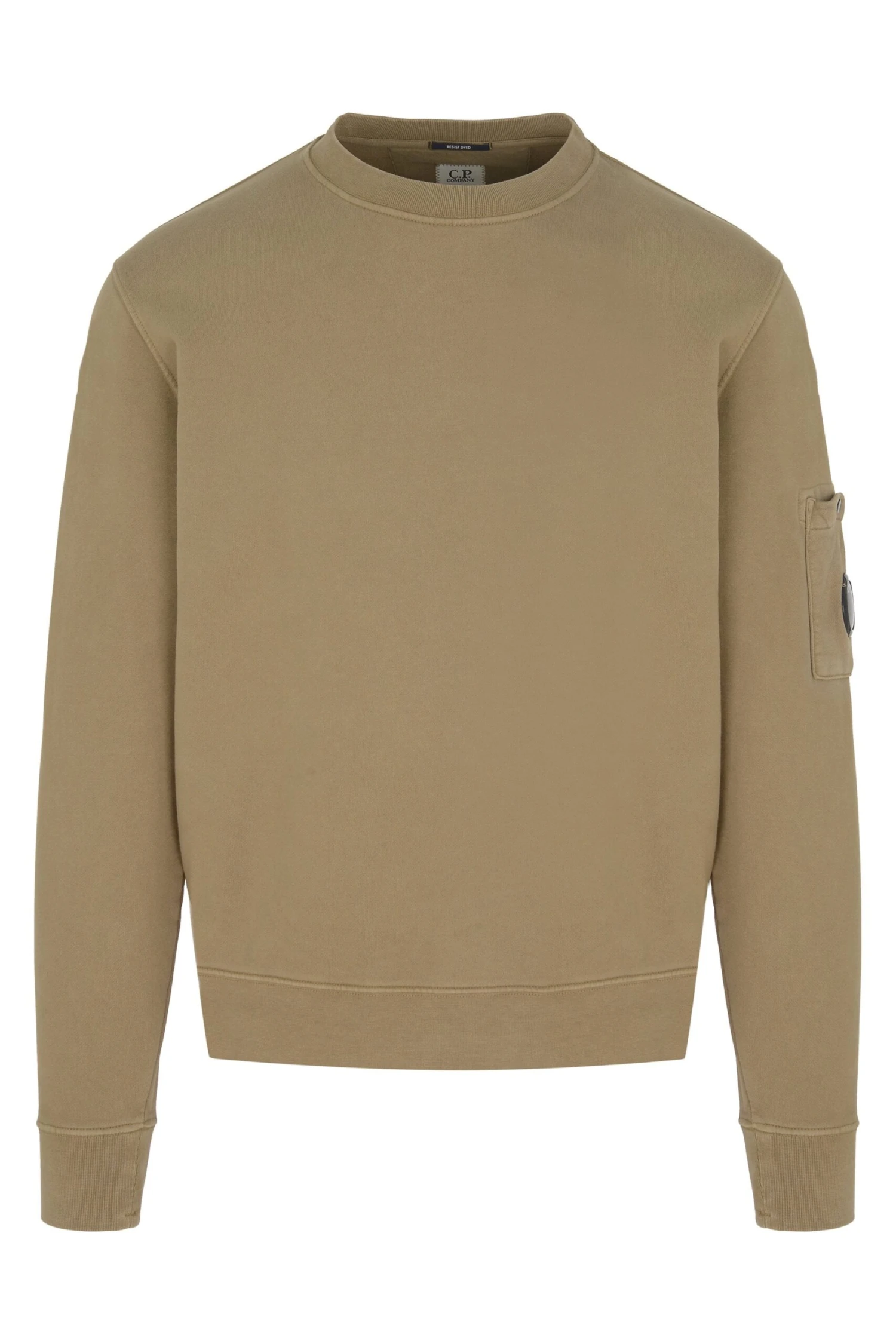 Crew neck sweatshirt with a ribbed collar, cuffs and hem, and with the C.P. Company Lens detail. Manufactured diagonal fleece, a mid-weight loopback cotton option that combines comfort with a substantial and hard-wearing feel, and resist dyed for a varied, tonal finish