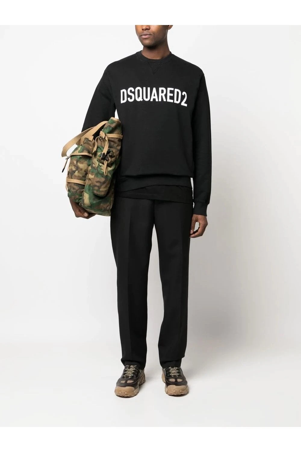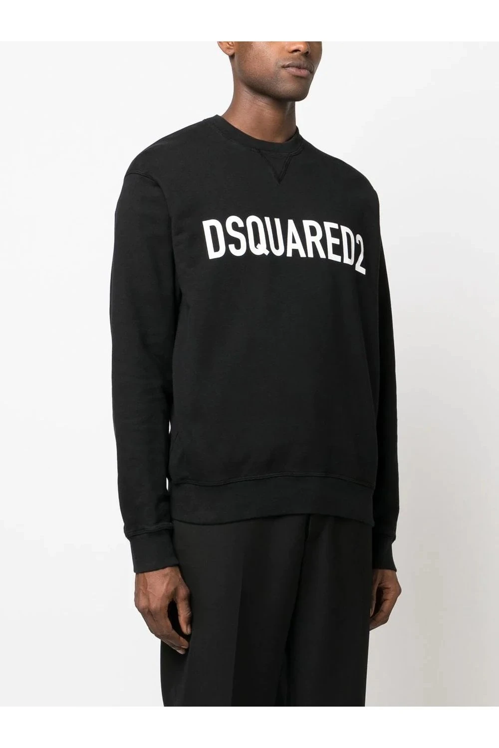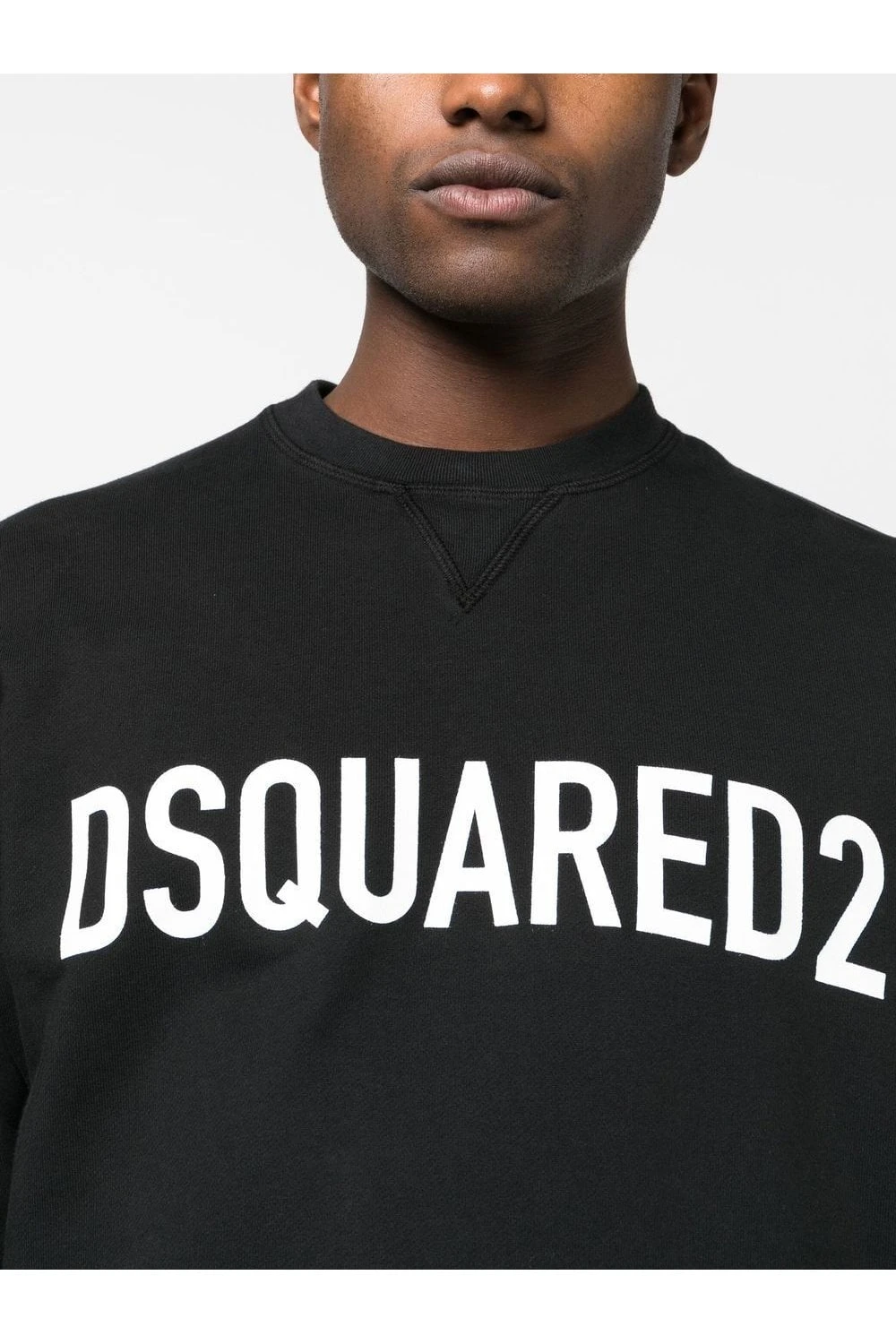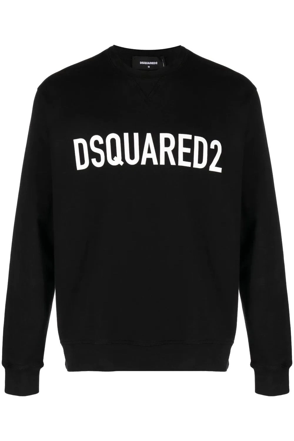 Black/white slogan-print crew neck sweatshirt from DSQUARED2 featuring a logo print to the front, crew neck, long sleeves and elasticated hem.