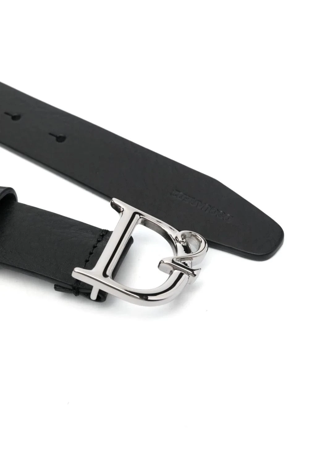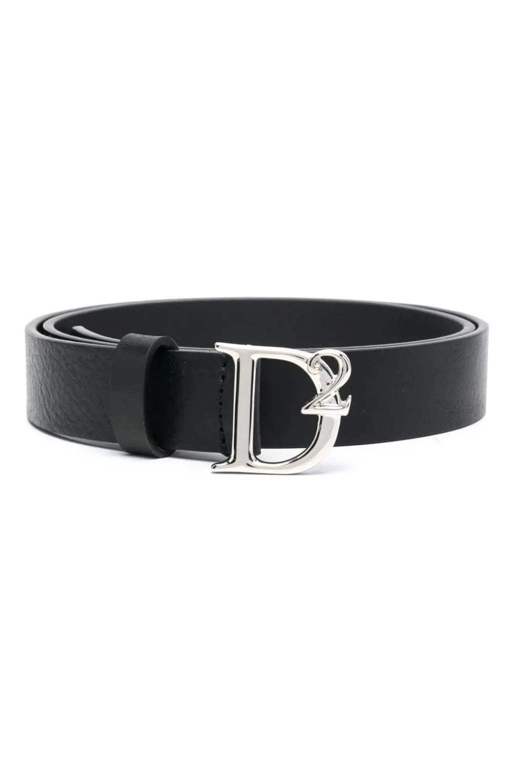Black/silver leather logo-buckle belt from DSQUARED2 featuring adjustable fit, silver-tone hardward, logo-buckle fastening and punched holes