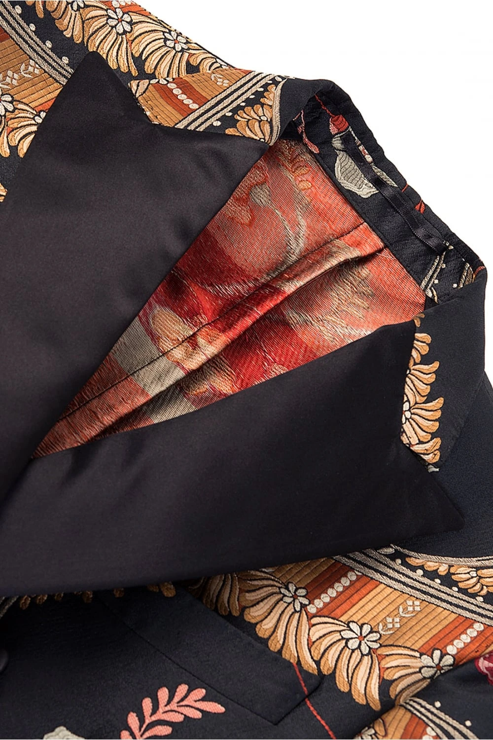 Made in Italy, this exceptionally stylish and smart, you are sure to stand out in this blazer from Dsquared. Featuring a Jacquard Satin lapel collar with black button fastenings both at the front and on the cuffs of this blazer. A rear slit is featured on this semi lined blazer and two front pockets and chest pocket blend seamless into the unique pattern. Wear this to any smart function for an eye catching outfit.