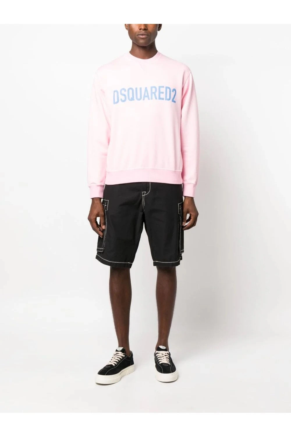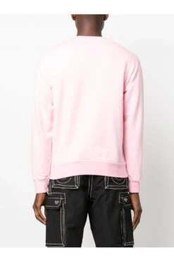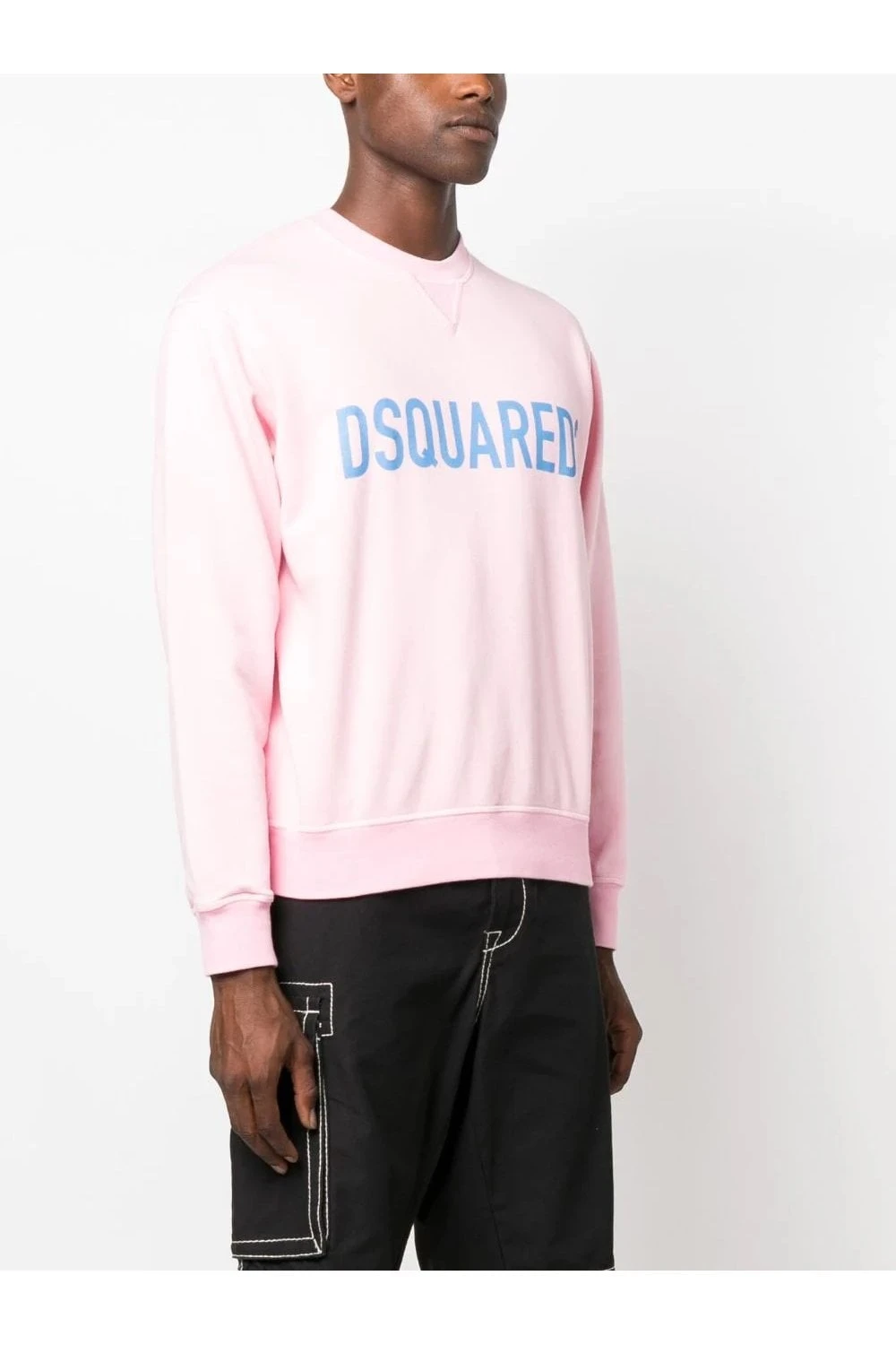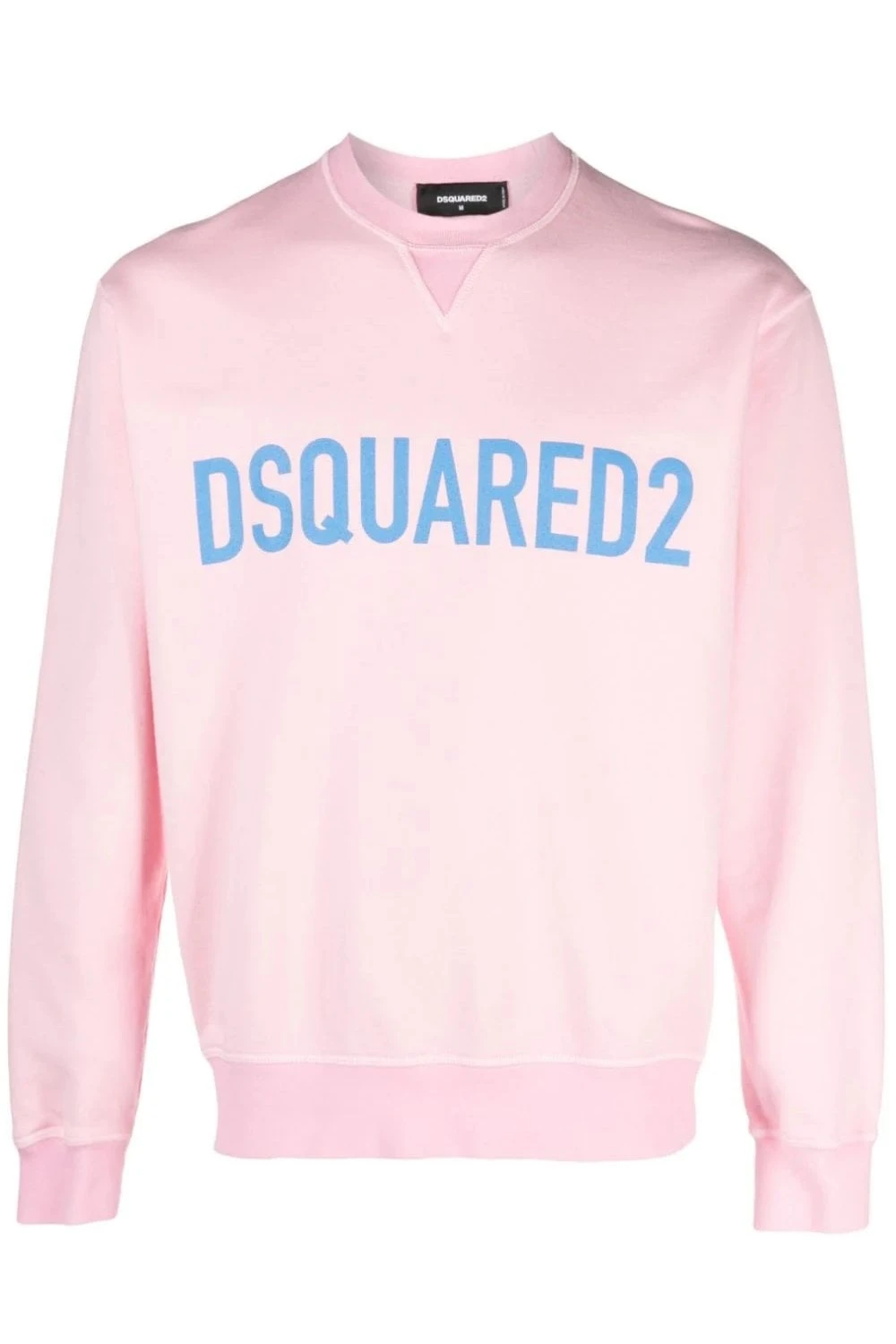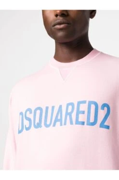 Logo-print cotton sweatshirt from DSQUARED2 featuring pink, stretch cotton, jersey fleece, logo print to the front in blue, crew neck, long sleeves, fitted-cuff sleeves and straight hem.
