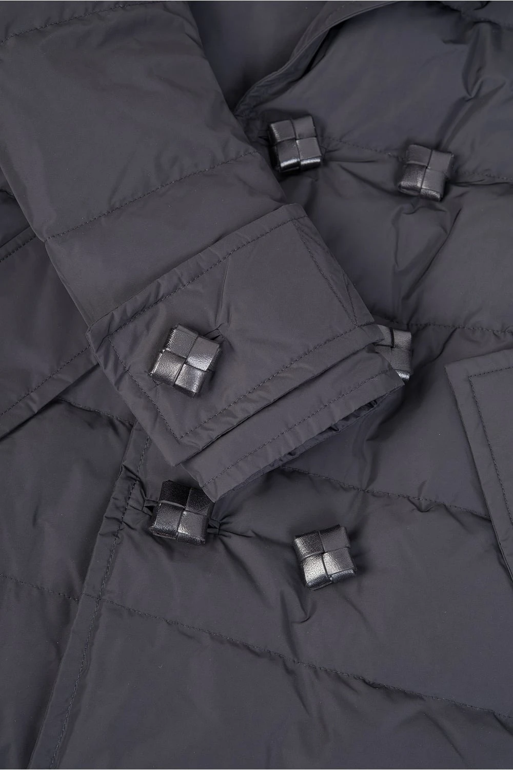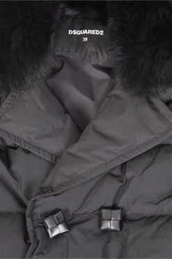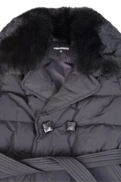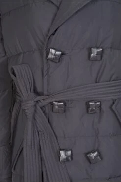 Featuring a faux fur collar, with leather knotted buttons and press studs. A belted waist and sleeve cuffs. This flattering puffer trench coat has been crafted with a transitional stylish fit. Can easily be worn from day to night. Wear with ankle boots and a handbag to complete the look.Â