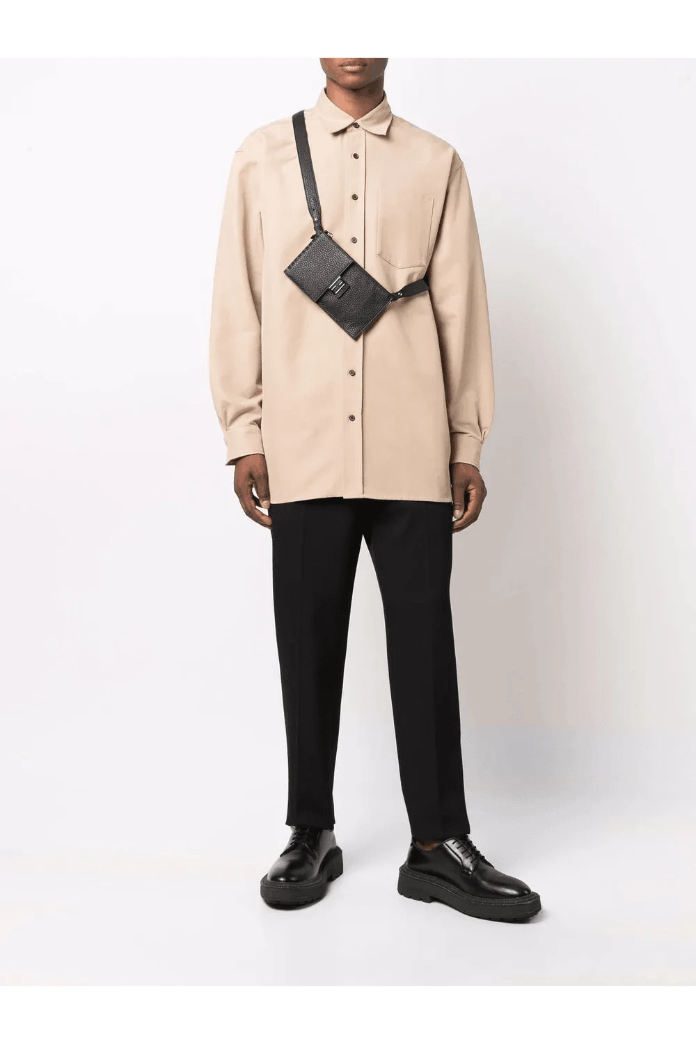 First seen in 1997, the Baguette bag gets its name from its silhouette and is reinterpreted every season. For AW21, the Italian house presents this black iteration. Crafted from grained leather, it is distinguished by the contrast silver-tone FF logo.