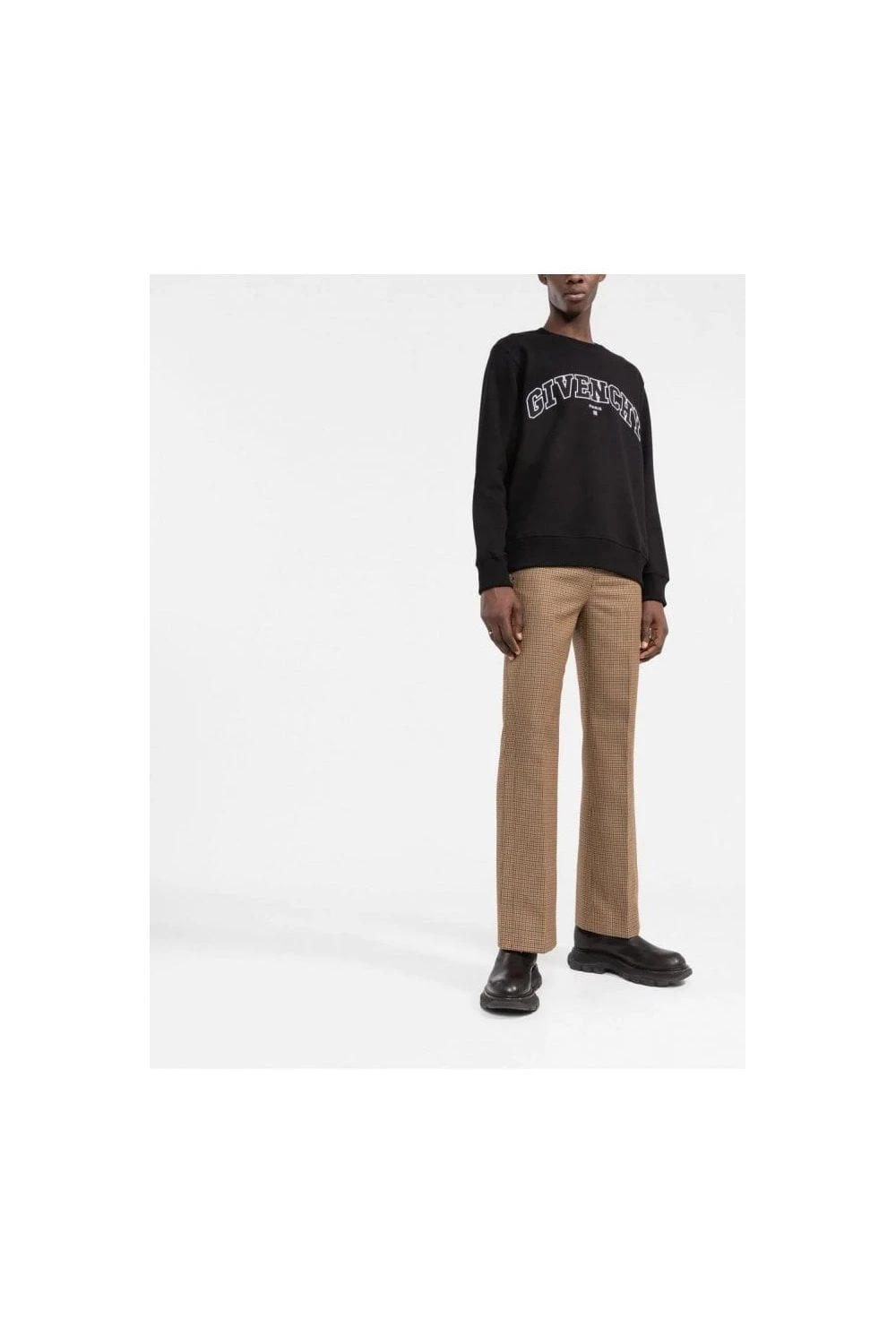 College logo-embroidered sweatshirt from GIVENCHY featuring black, cotton, embroidered logo to the front, embroidered logo to the rear, long sleeves and straight hem