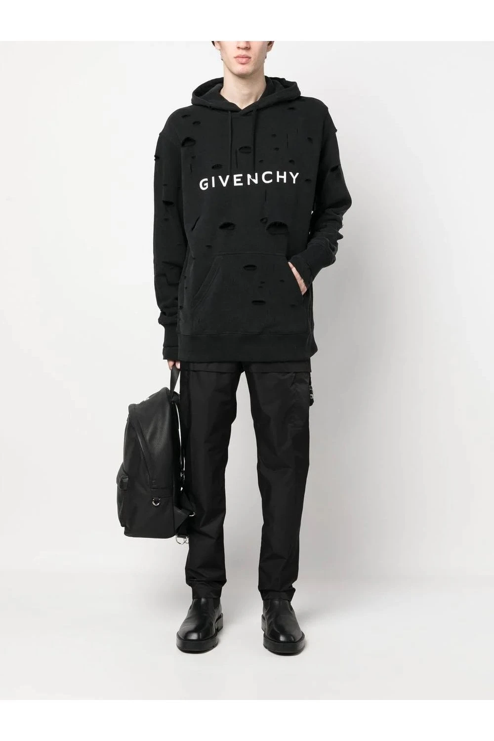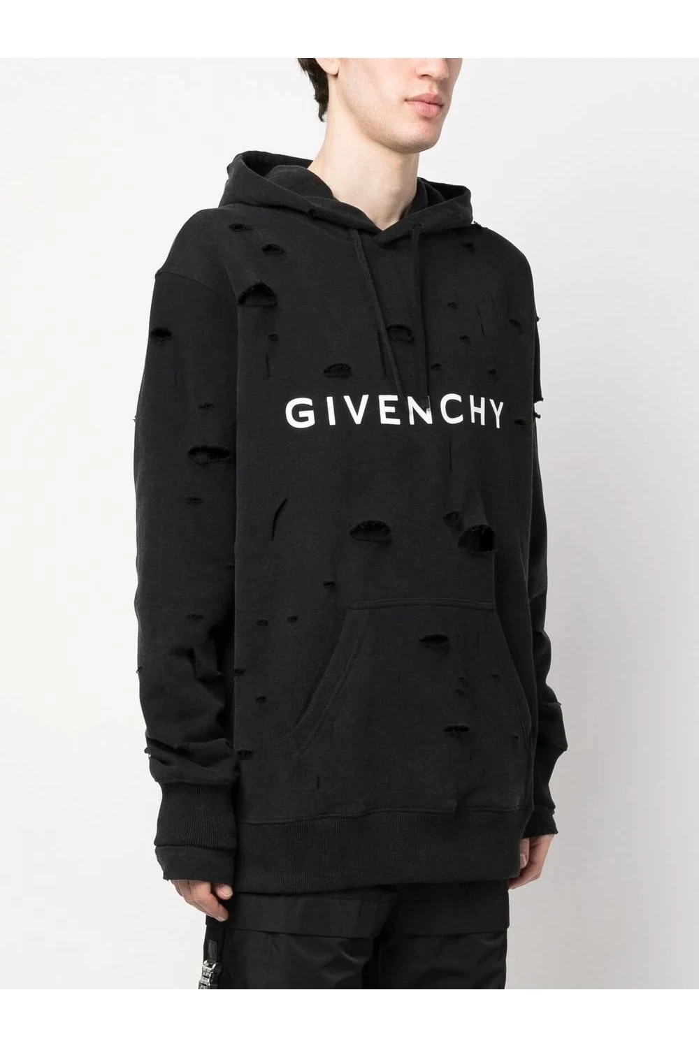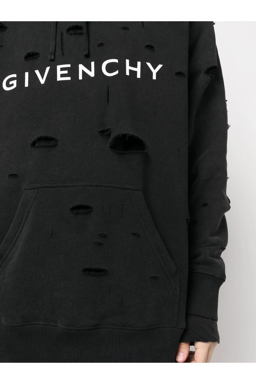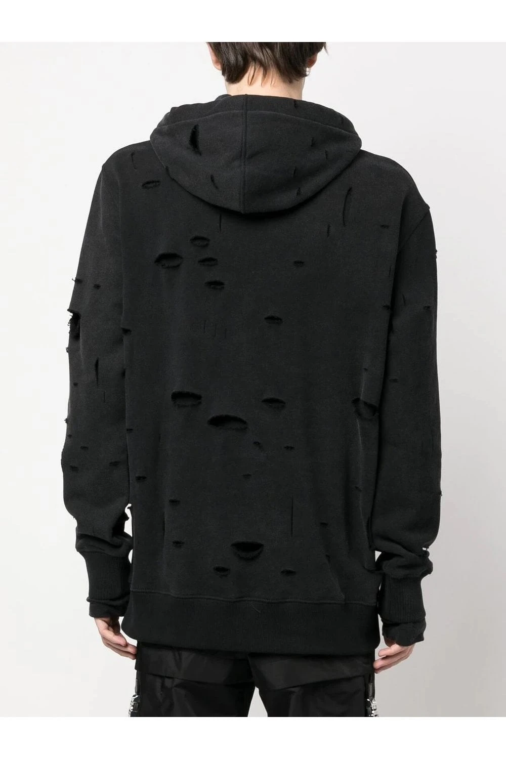 - Hooded sweatshirt in soft felpa with destroyed effect