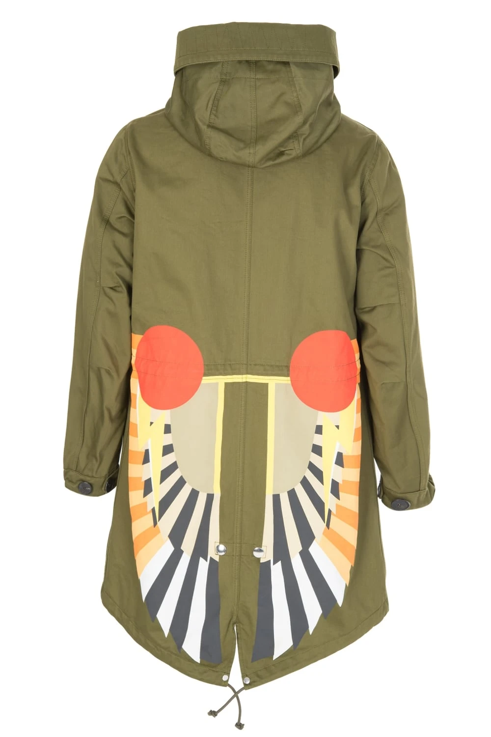 A classic hooded parka brought to you by Givenchy featuring a concealed zip fastening at the front and a colourful print across the lower back. Finished off with a drawstring waist and hem as well as two slant pockets located on the front. Add this parka to your coat collection for warmth, comfort and style. Perfect for everyday wear.