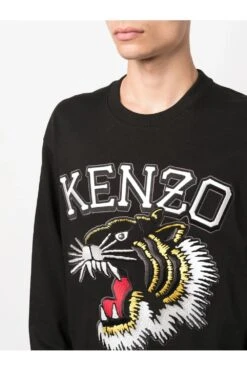 This sweatshirt highlights the importance of animals in KENZO’s designs. Its eye catching tiger print takes centre stage and complements the logo print to the front while a logo patch at the nap cements the branded aesthetic.