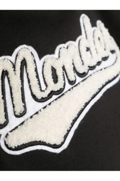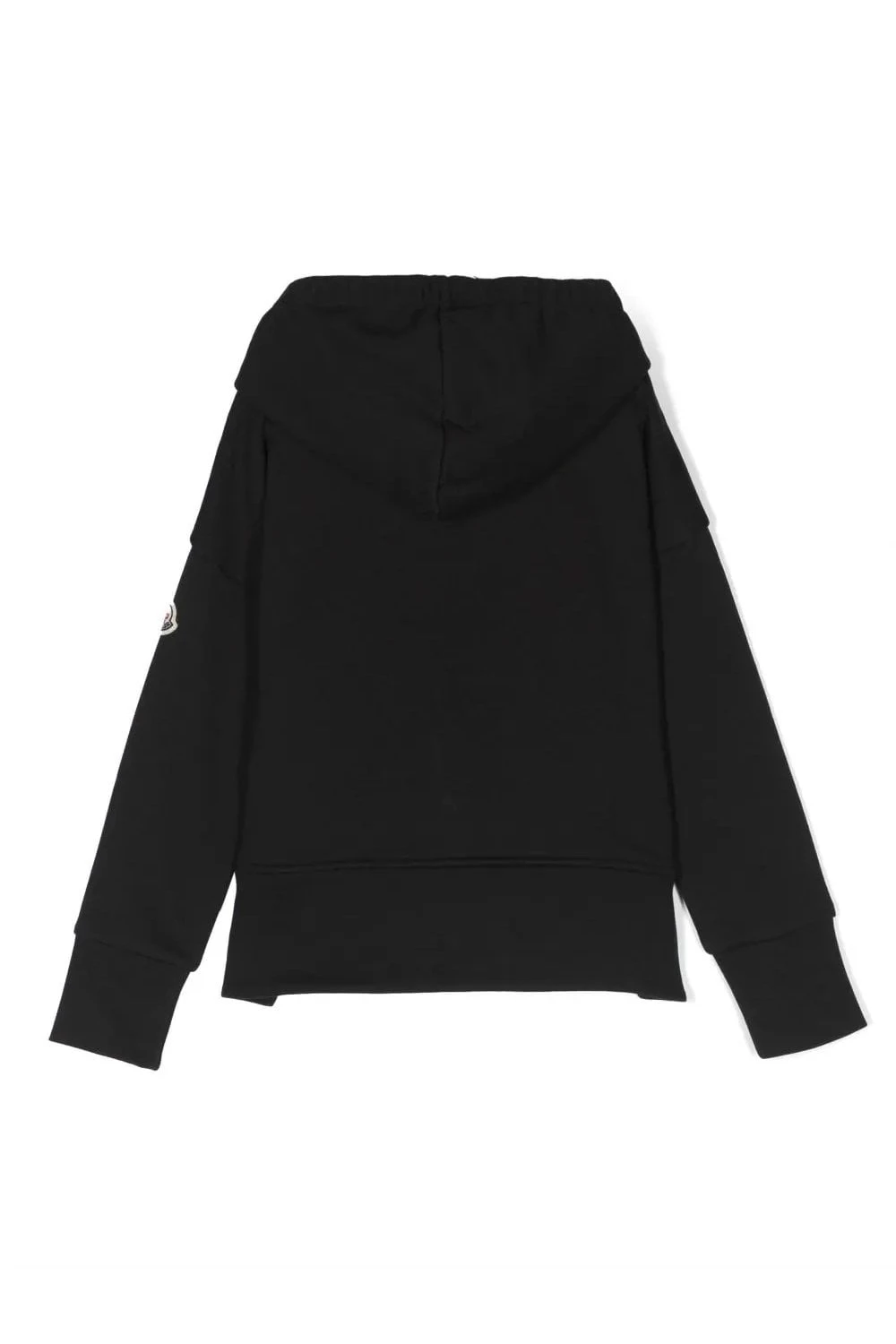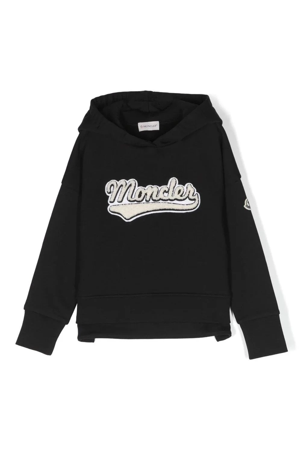 Moncler Enfant brands this black cotton hoodie with a varsity-style applique logo, a reference to the label’s sportive essence
