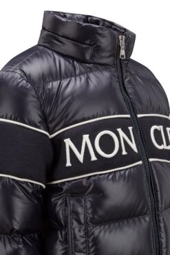 The Truyere down jacket enables kids to play freely by not restricting movement. The comfortable puffer is crafted from recycled polyester and embellished with logo lettering across the chest. A detachable hood allows the little ones to adapt the jacket to their needs and to the weather