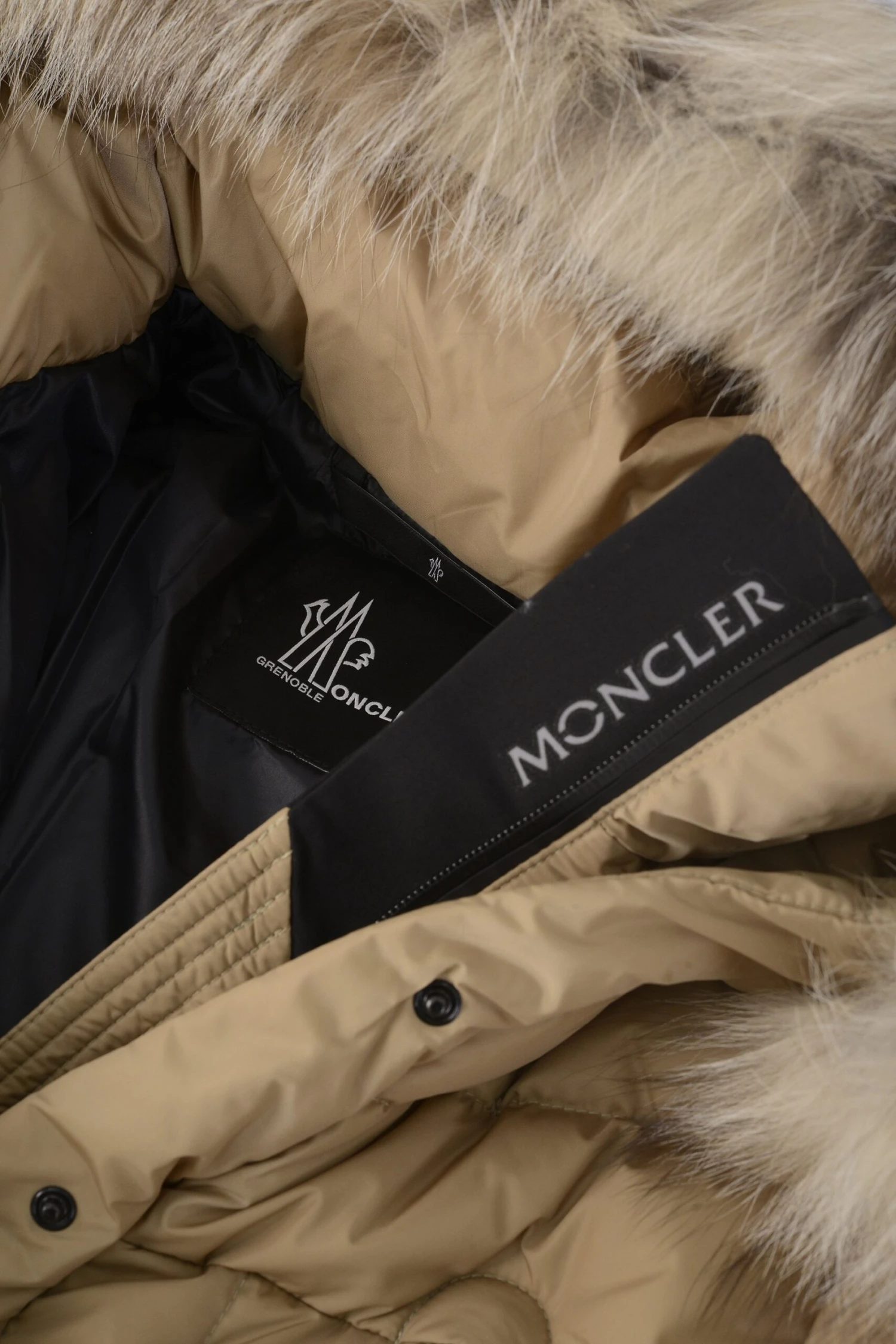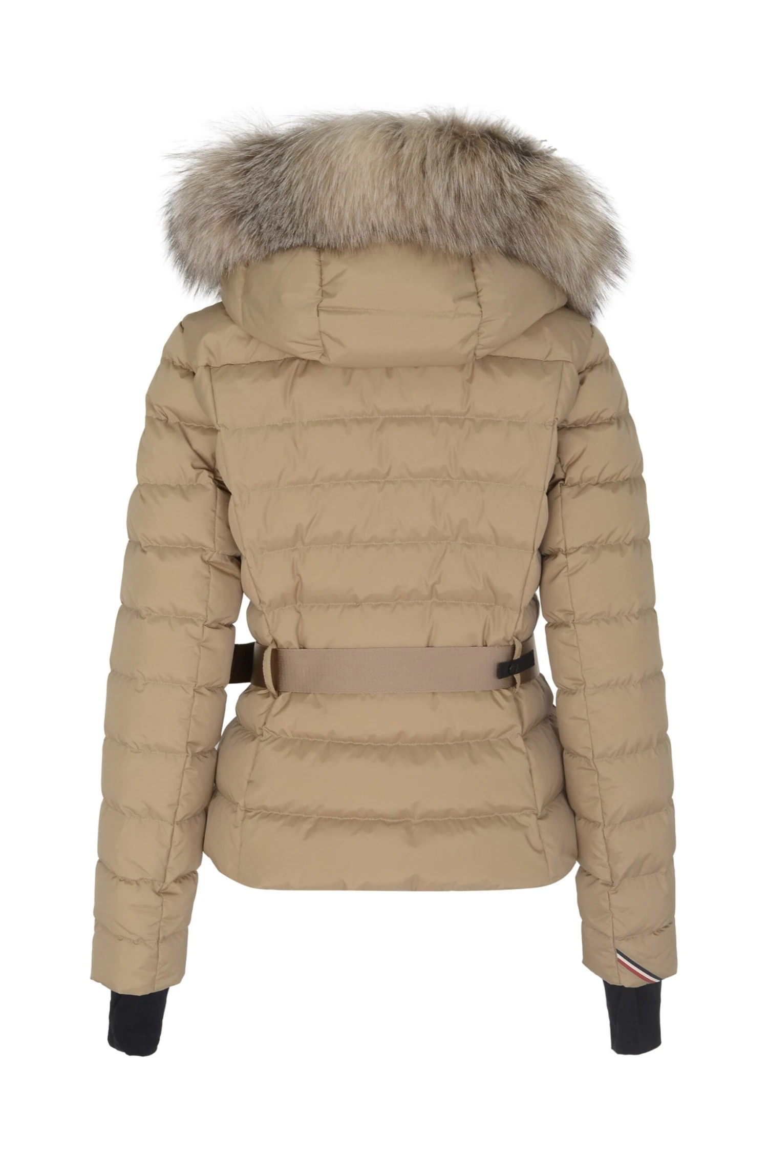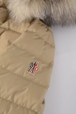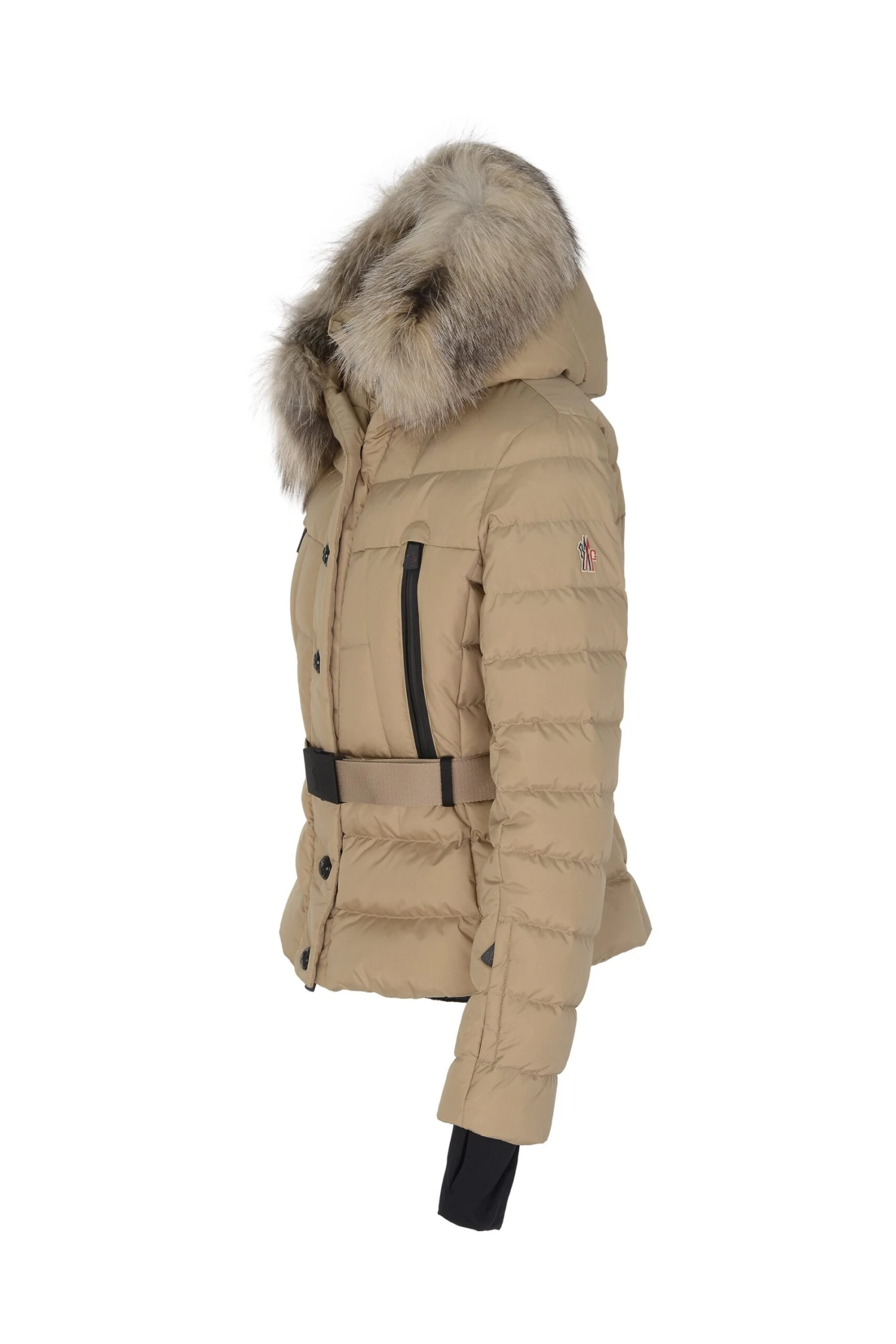 Beverley is a women’s down jacket crafted from 2-layer tech nylon. The proportions highlight the silhouette, emphasizing the femininity of the piece along. A fox fur trim adorns the hood, adding a luxurious touch to the technical puffer jacket