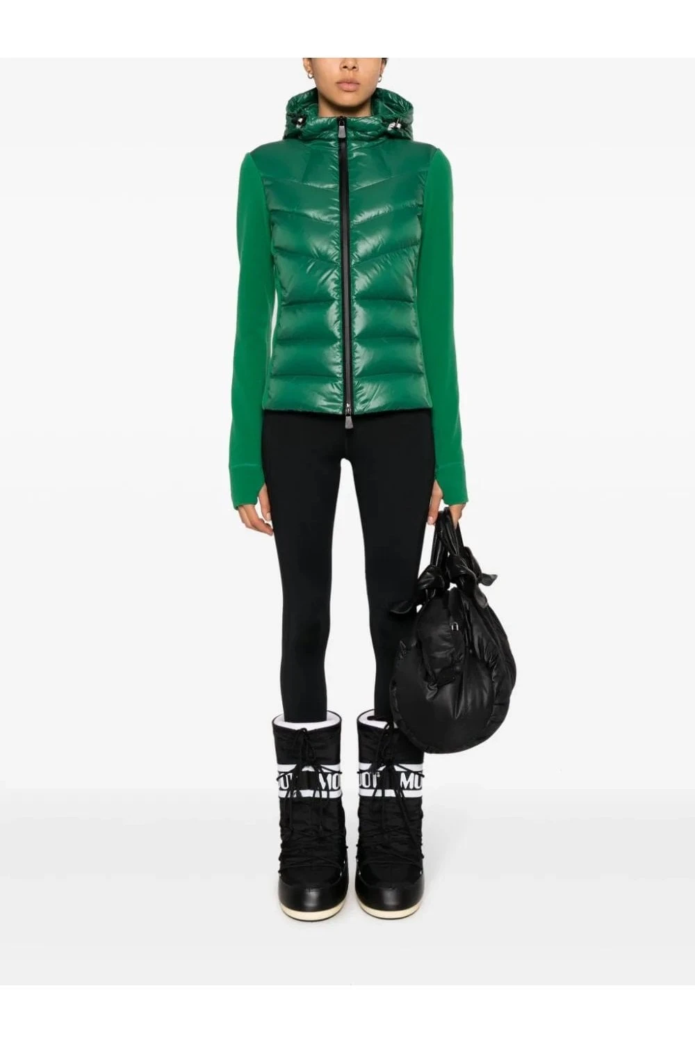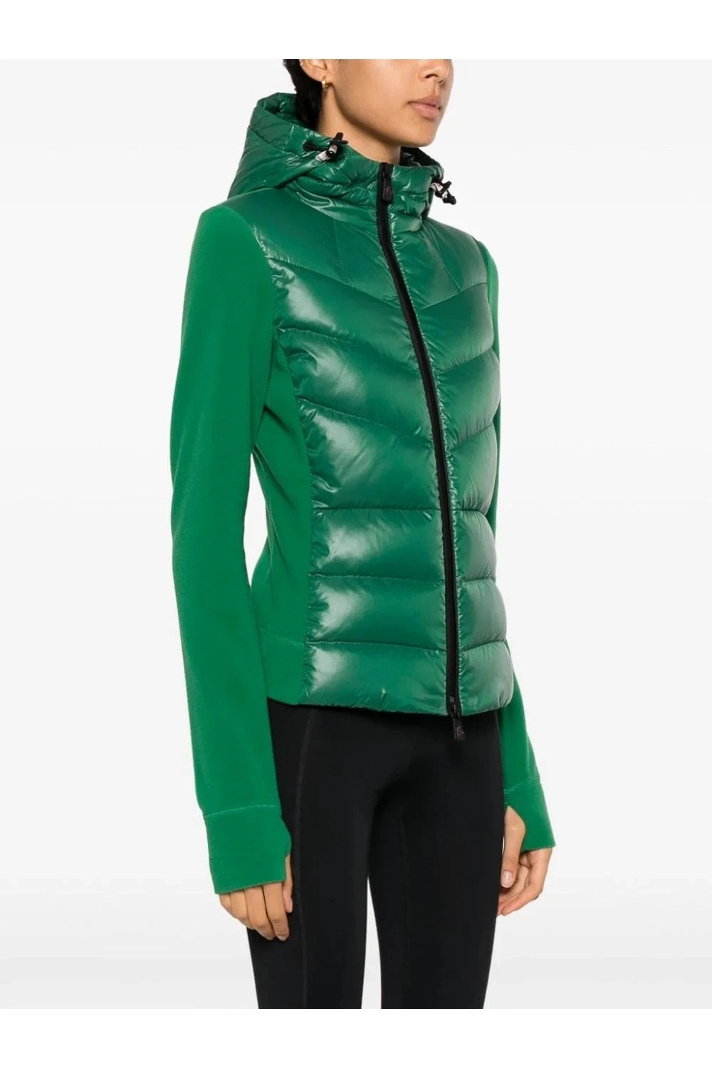 Designed as a mid-layer, this padded hoodie is best when worn under heavier jackets. Crafted from stretch polar fleece, the zip-up style is enhanced with a down-filled front. The nylon laque front and hood are paired with water resistant zippers, enabling the sweatshirt to double as outerwear in milder weather