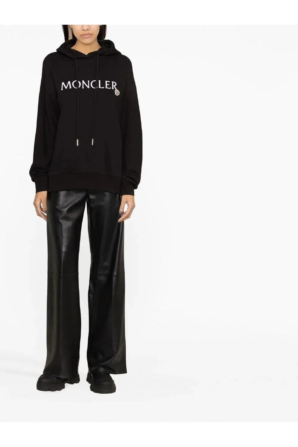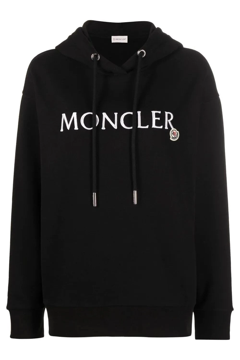 Cut from black cotton with a warm fleece lining, this Moncler hoodie is embroidered with the brand’s lettering across the chest.