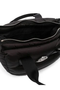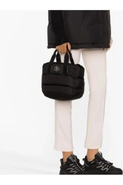 Inspired by iconic Moncler down jacket, the Caradoc bag is crafted from quilted nylon laque. Boasting an architectural, trapezoid shape, the mini tote fits your daily work or shopping essentials