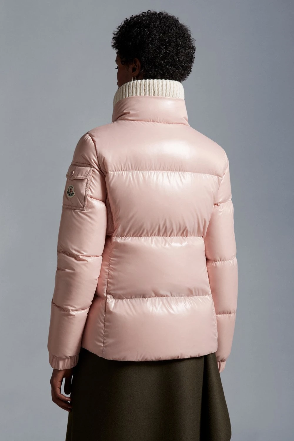 A feminine take on a classic puffer, the Vistule is crafted from iconic nylon laqué. The short down jacket comes in a classic high neck, boudin-quilted shape. A detachable knit collar adds another layer of warmth when you need it, while an iconic patch pocket on the sleeve adds the finishing touch