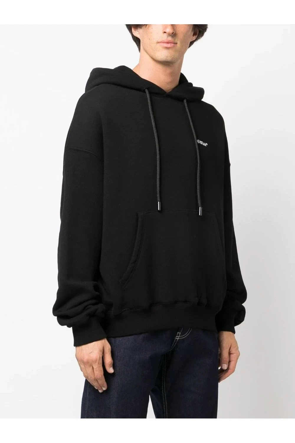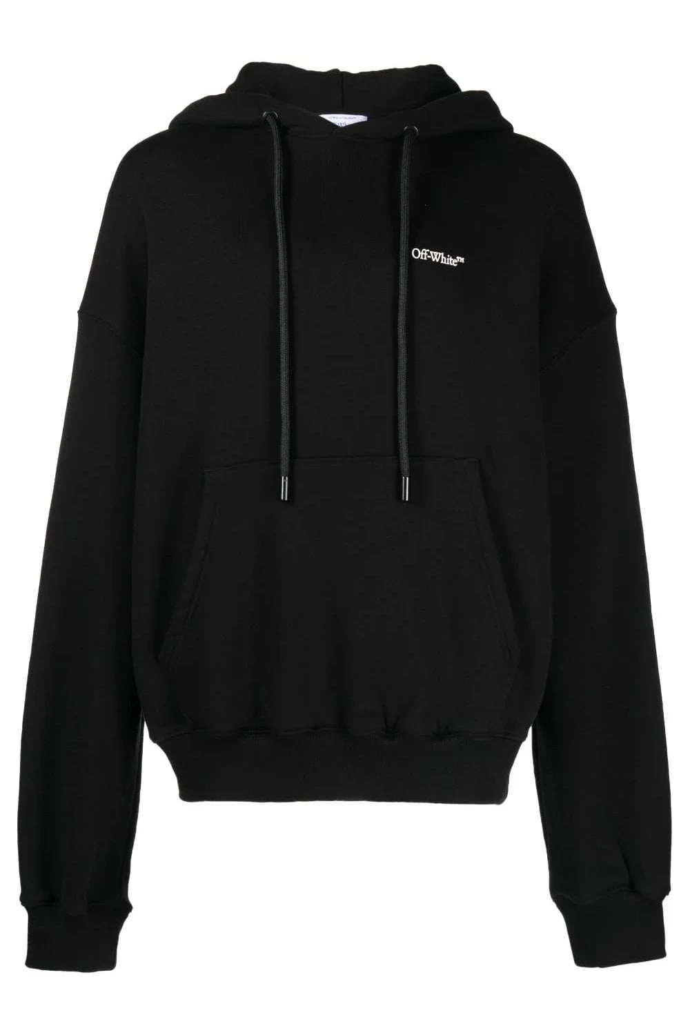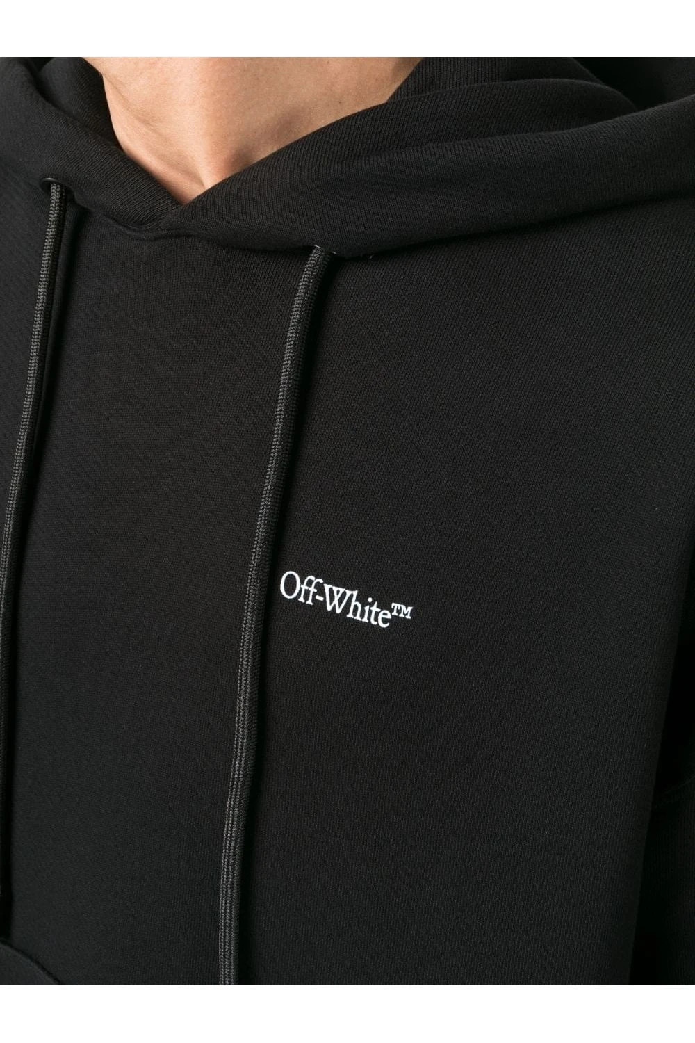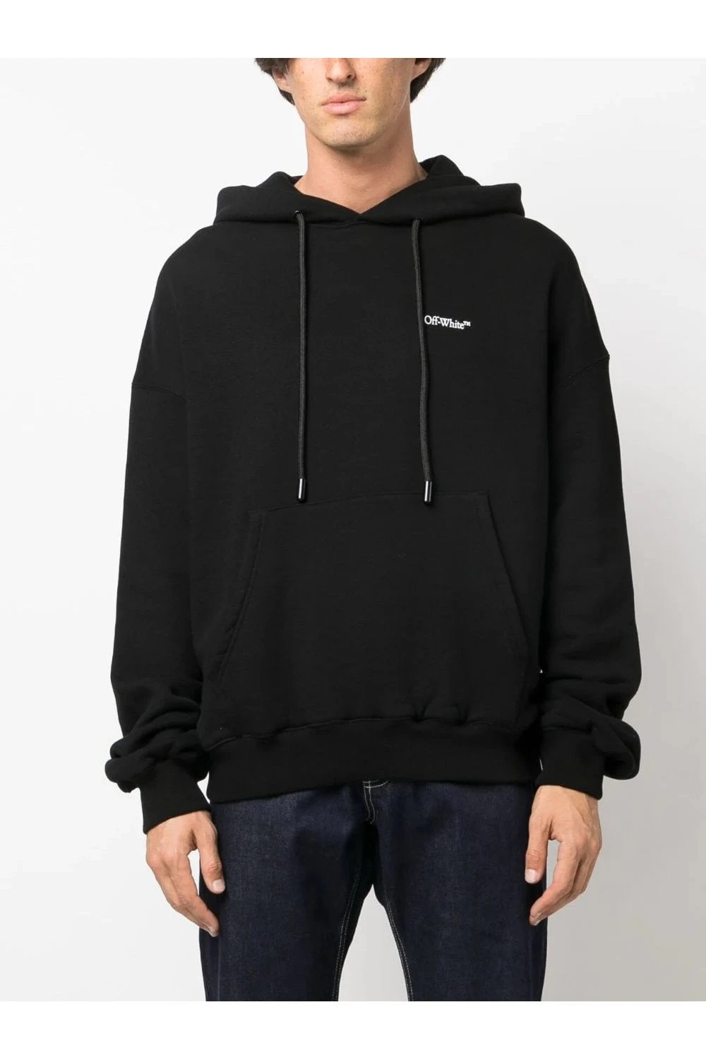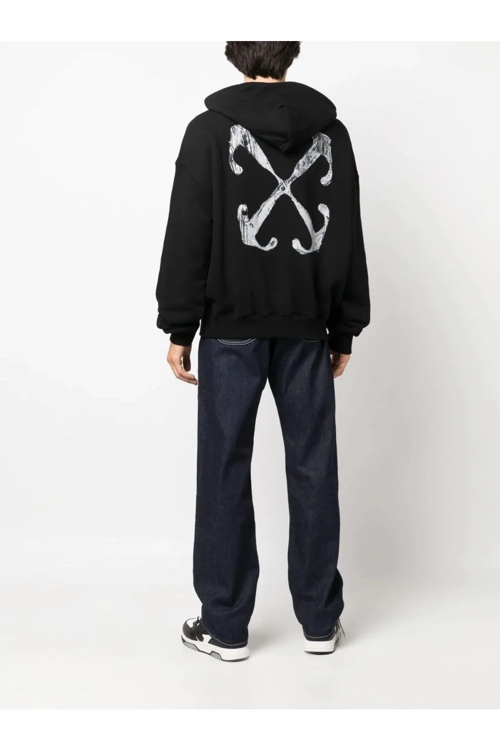 Off-White’s instantly recognisable motif, the Arrow adorns the back of this black cotton hoodie in a faded, white-hued ‘Scratch’ rendition, a nod to the brand’s affinity for logomania and bold graphic prints