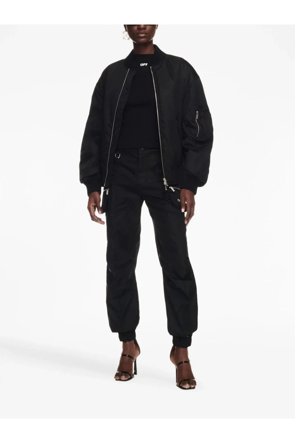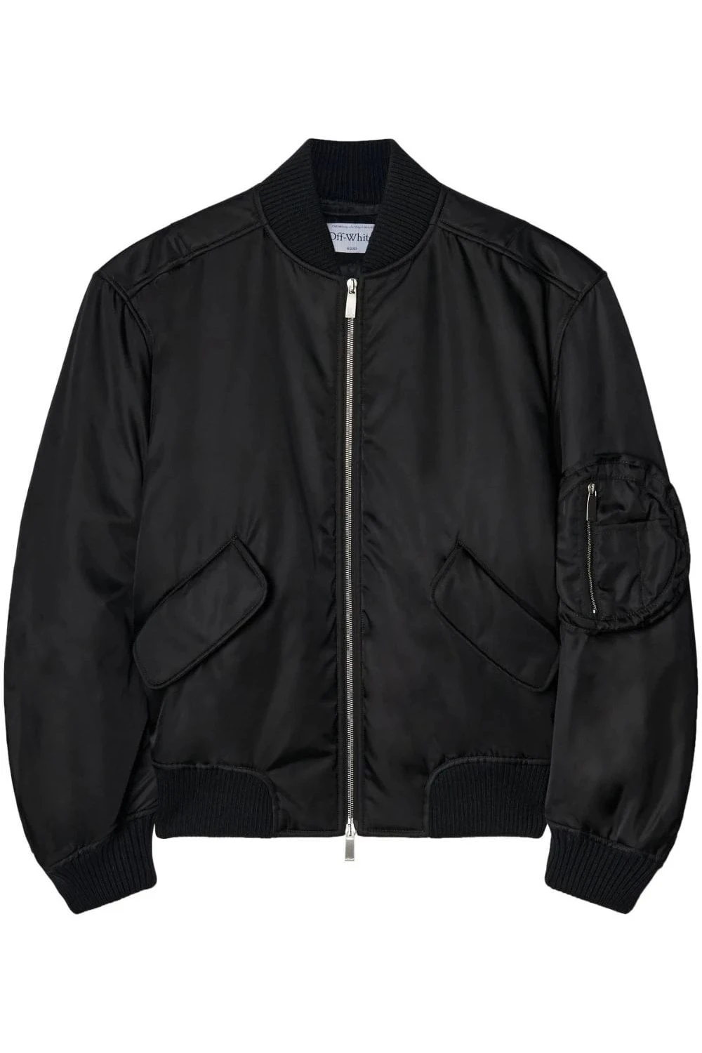 Pairing contemporary style with funcational design, this Off-White jacket is presented in a monochromatic hue, with a silver-tone hardware zip at the front adding a modern edge