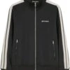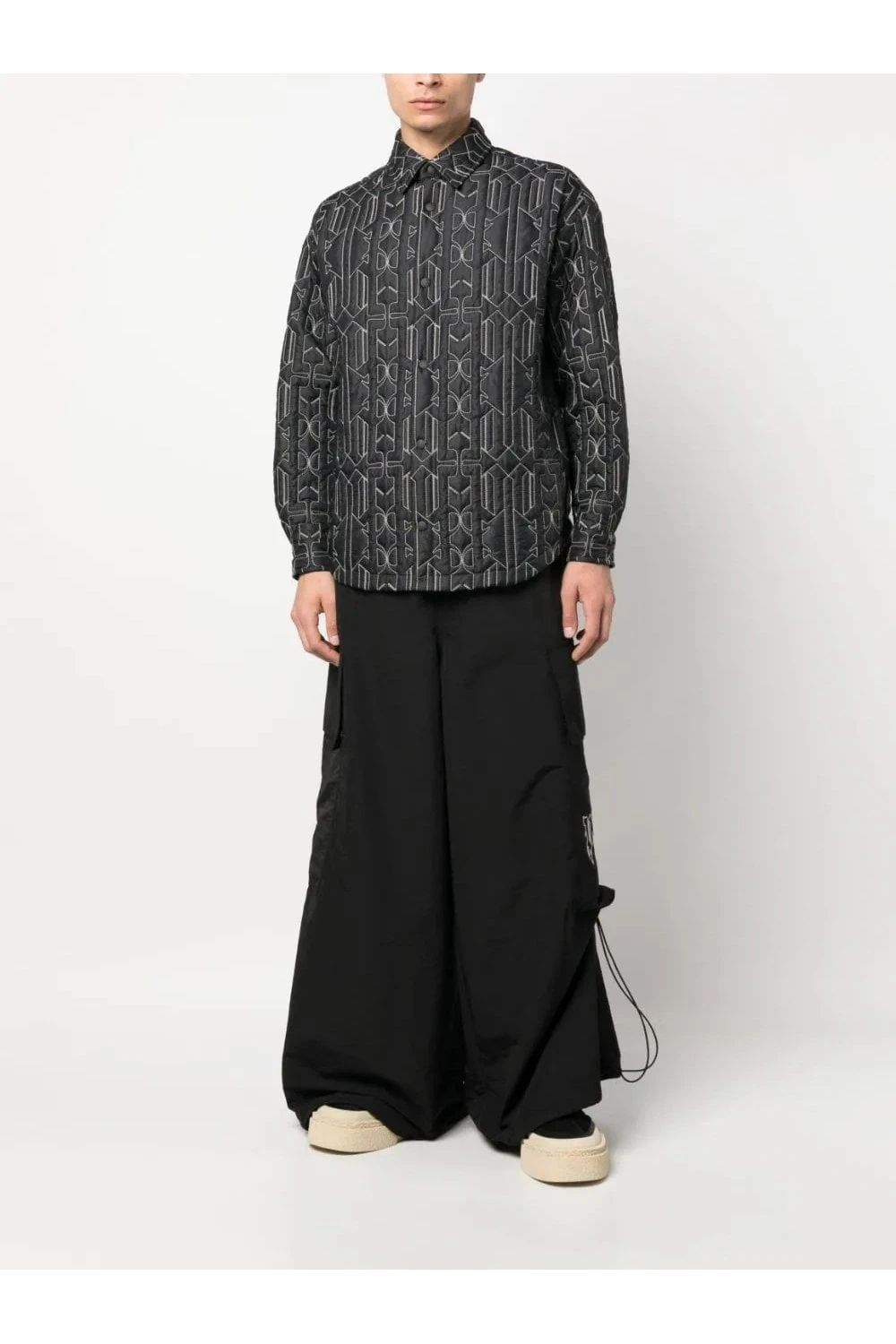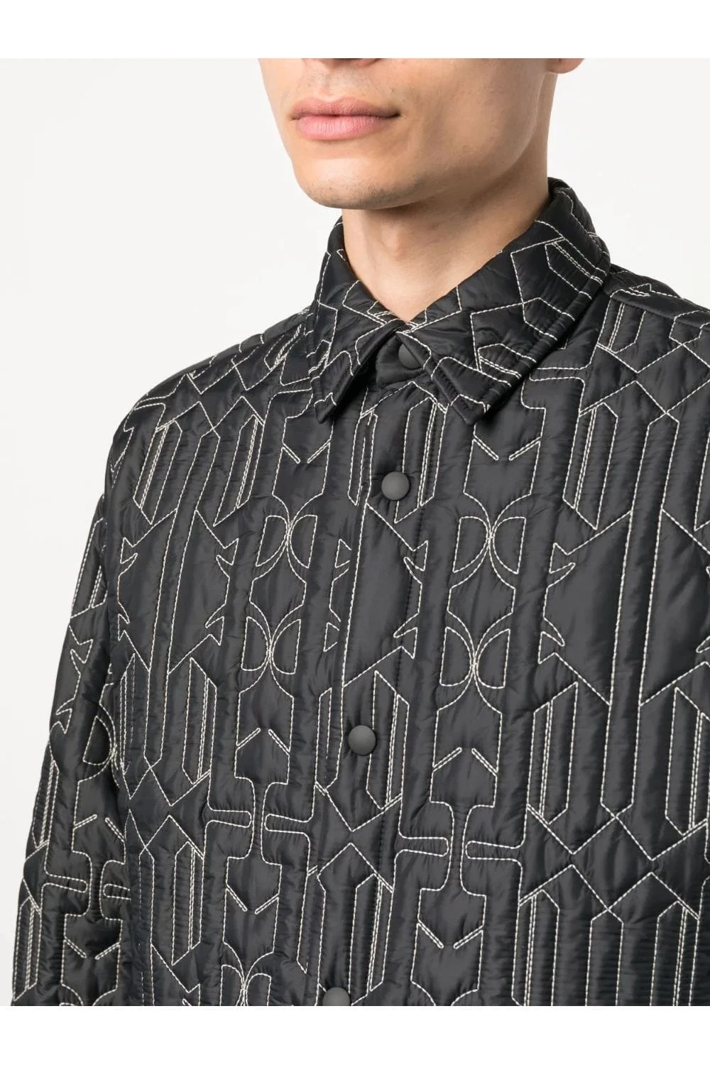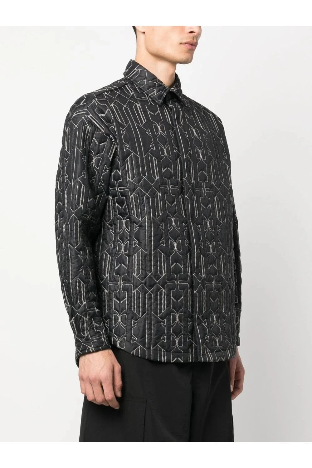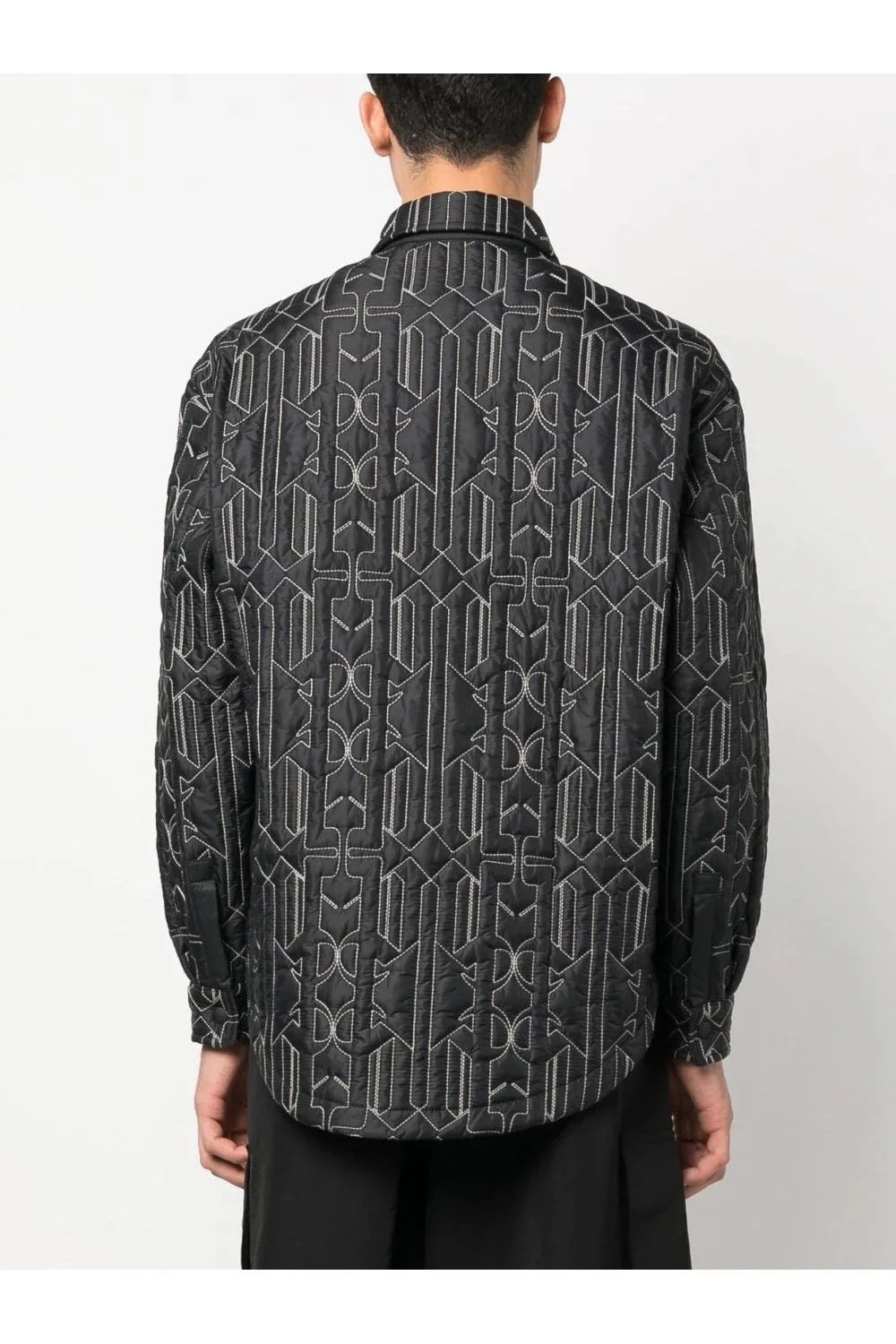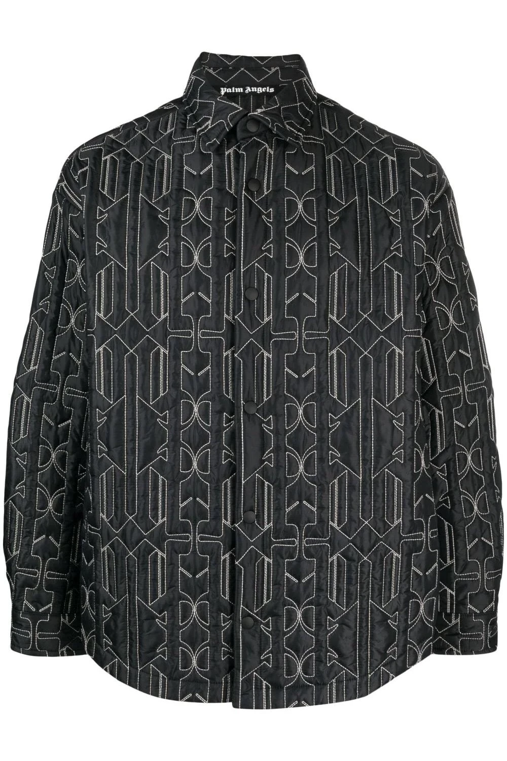 Palm Angels infuses a classic shirt jacket silhouette with subtle padding and a contrasting monogram stitching, cater to the brands Californian-inspired aesthetic.