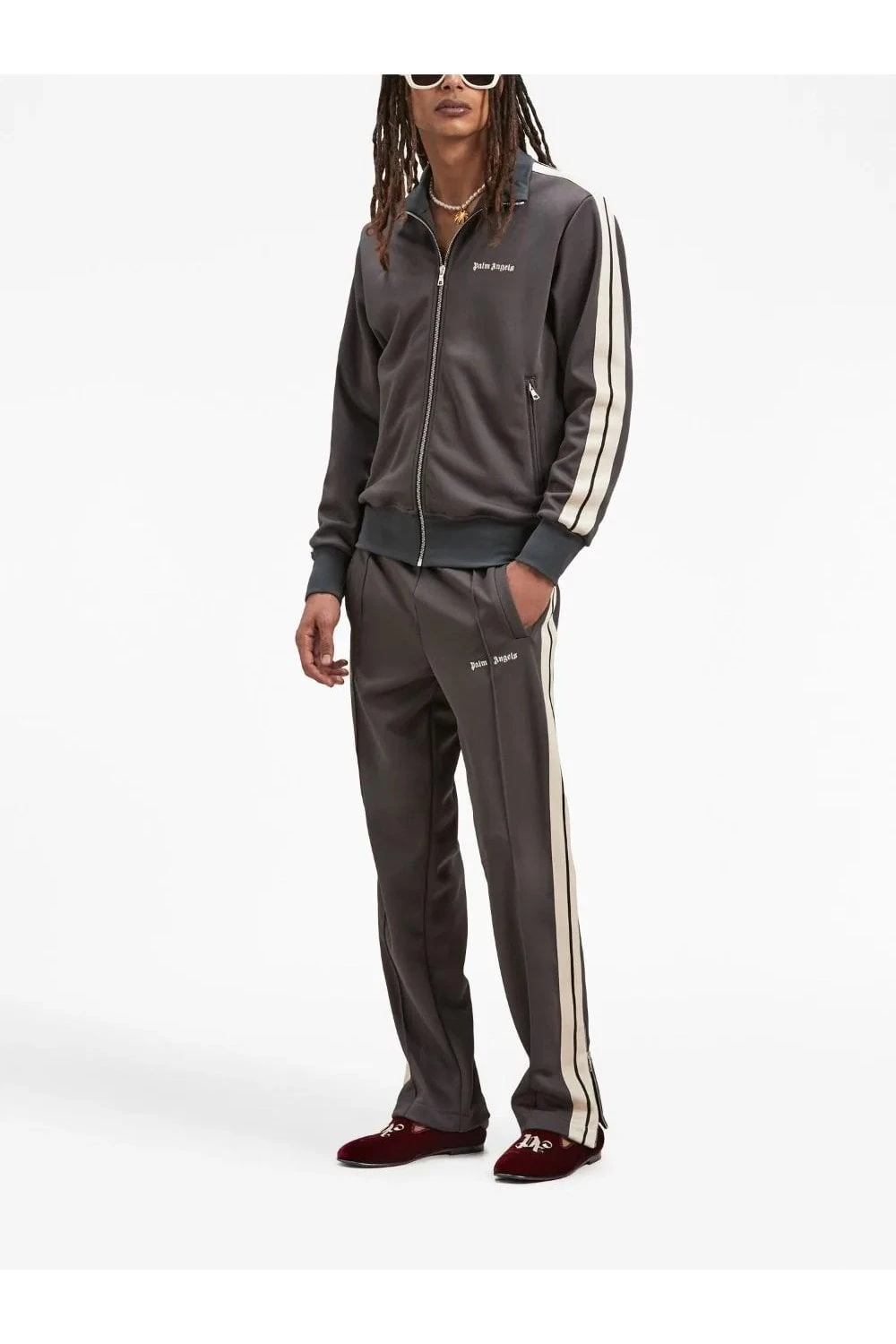 Palm Angels channels its streetwear-inspired aesthetic with these dark-grey track pants thanks to a relaxed straight-leg silhouette equipped with an elasticated waistband. Meanwhile, contrasting white side stripe detailing and a logo print to the side lend a branded finish