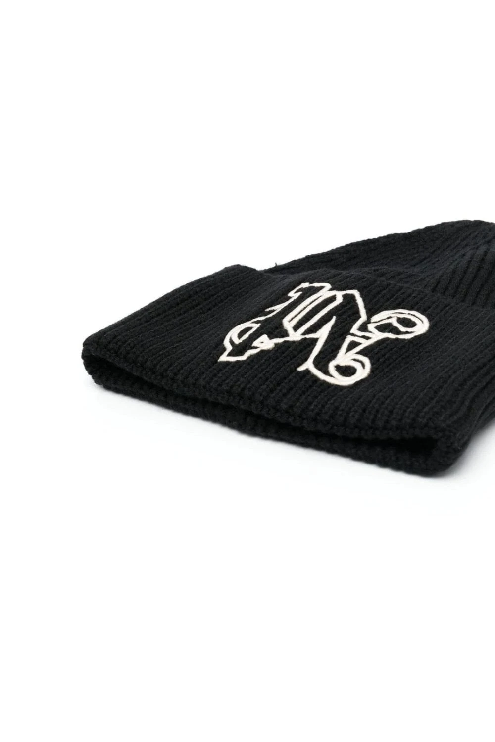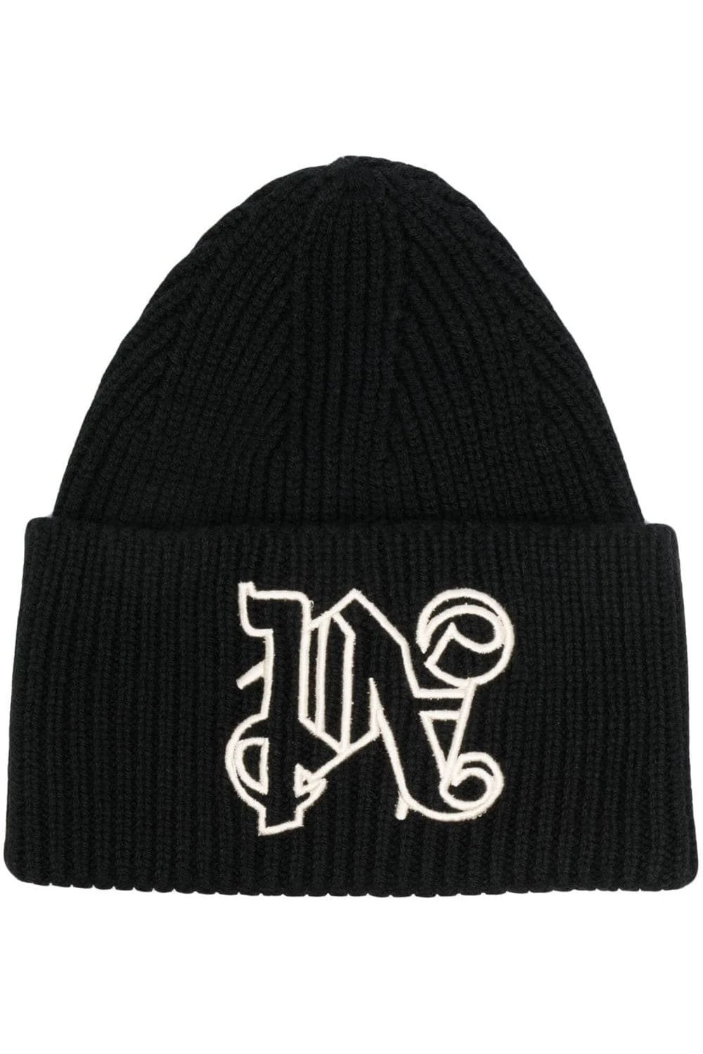 Palm Angels elevates a classic beanie design, crafted from a soft blend of wool in black. The contrasting Old English monogram is embroidered at the front from off-white threads.
