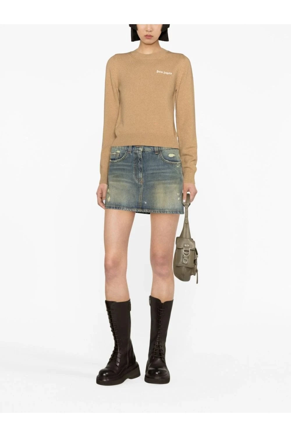 Merino-blend jumper brought to you by PALM ANGELS featuring long sleeves, ribbed cuffs and hem and crew neck. This knitted constructed jumper is finished with an embroidered logo at the chest