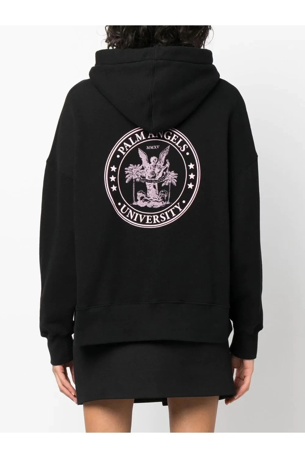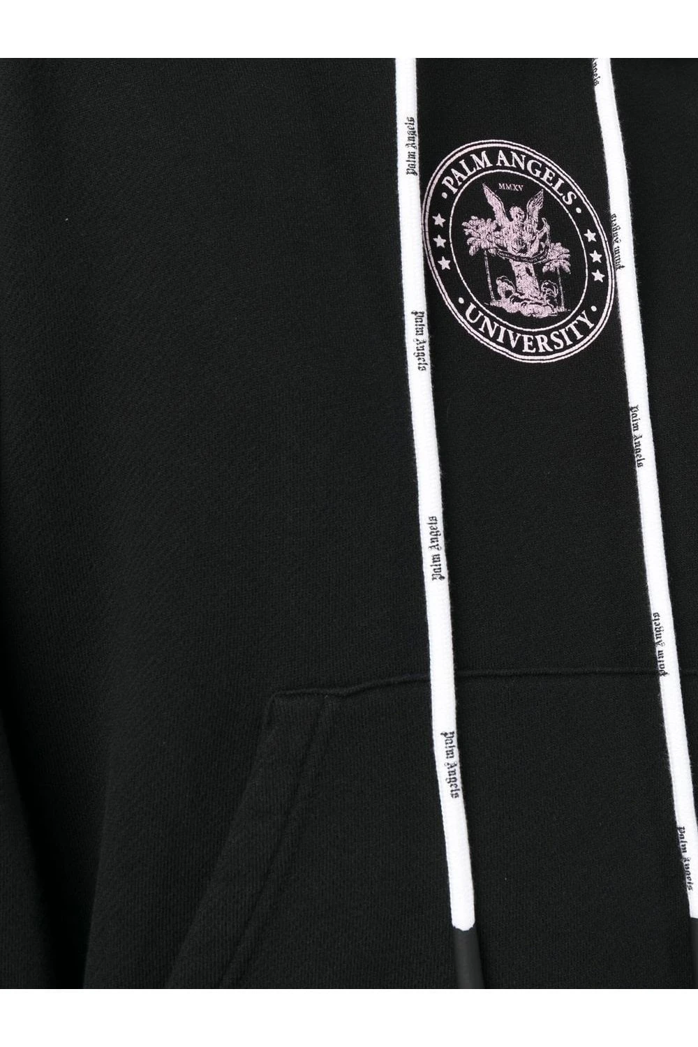 Boasting Palm Angels’ effortlessly relaxed aesthetic, this black hoodie is adorned with the brand’s college logo at the front in contrasting blush pink.