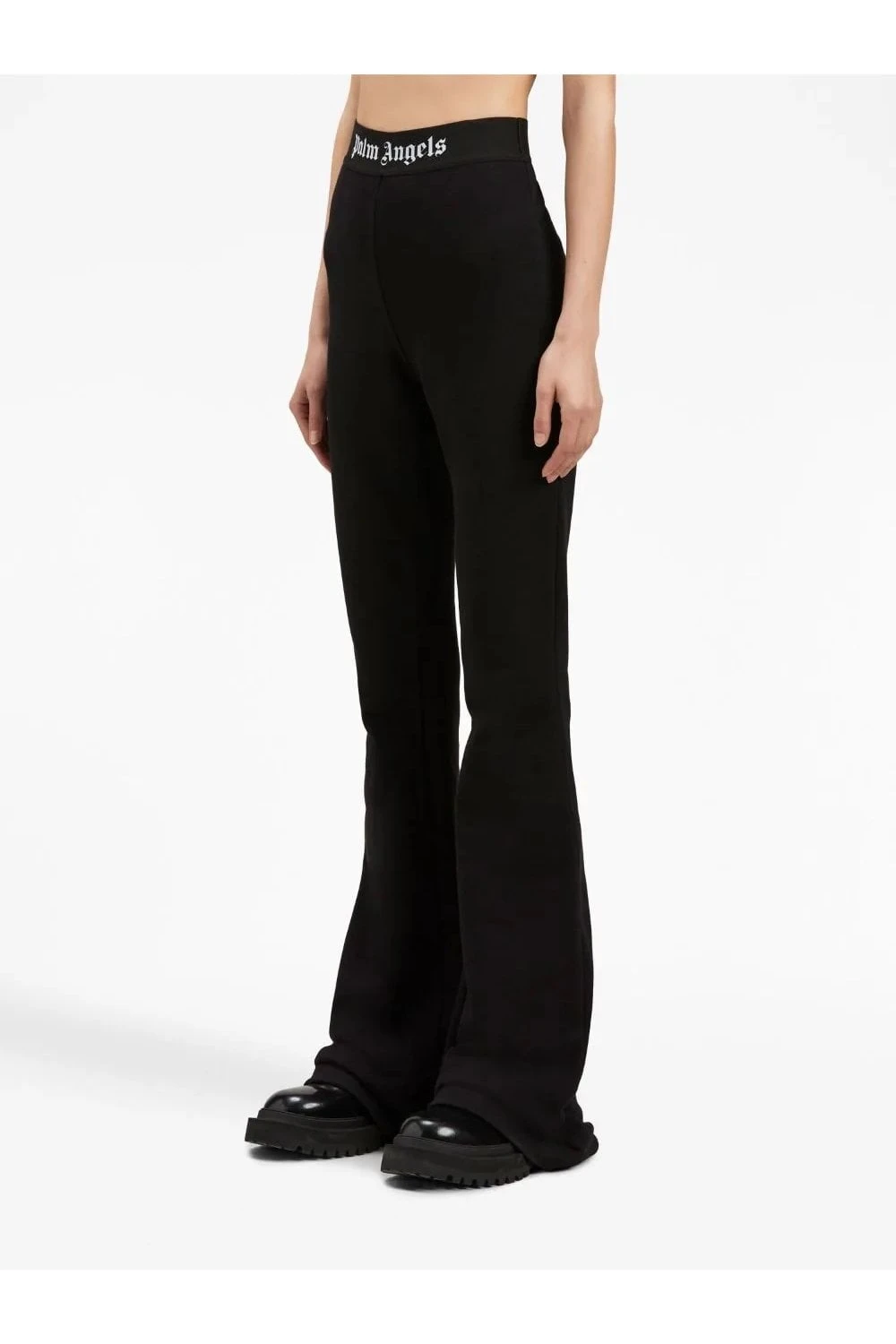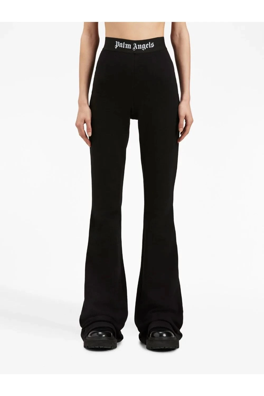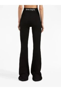 Presented in black, these flared trousers by Palm Angels embrace a minimal design. Sitting high on the waist, the pair is simply decorated with the brand’s signature logo tape