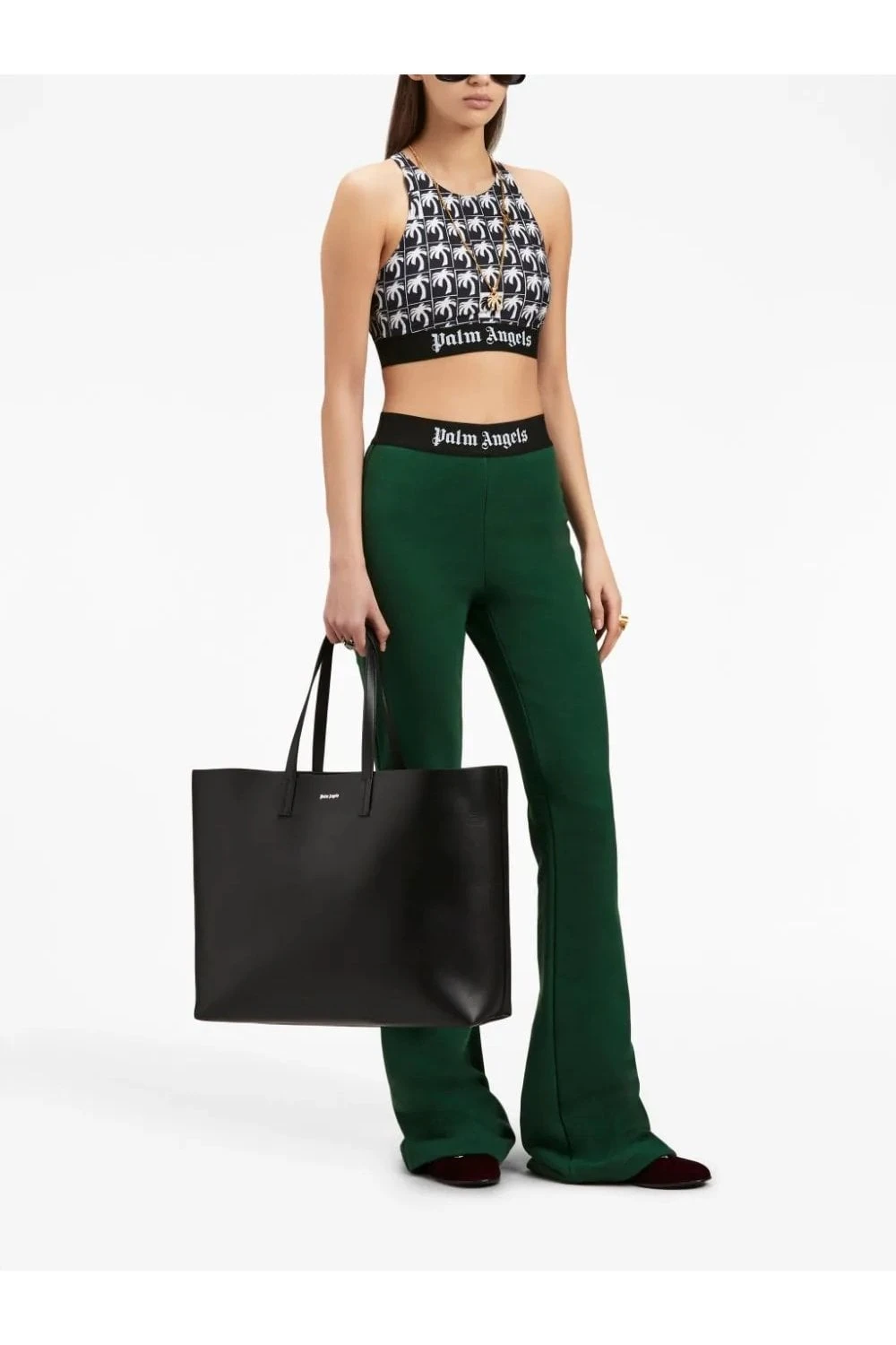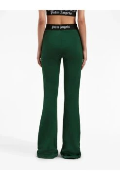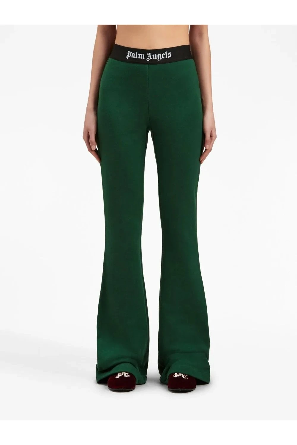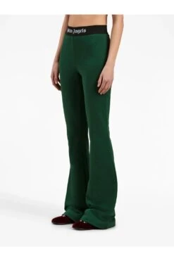 Presented in forest green, these flared trousers by Palm Angels embrace a minimal design. Sitting high on the waist, the pair is simply decorated with the brand’s signature logo tape