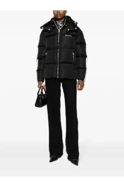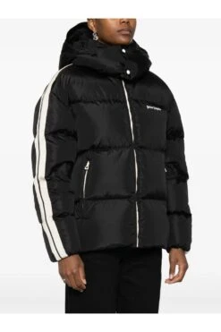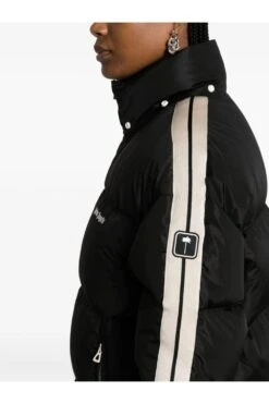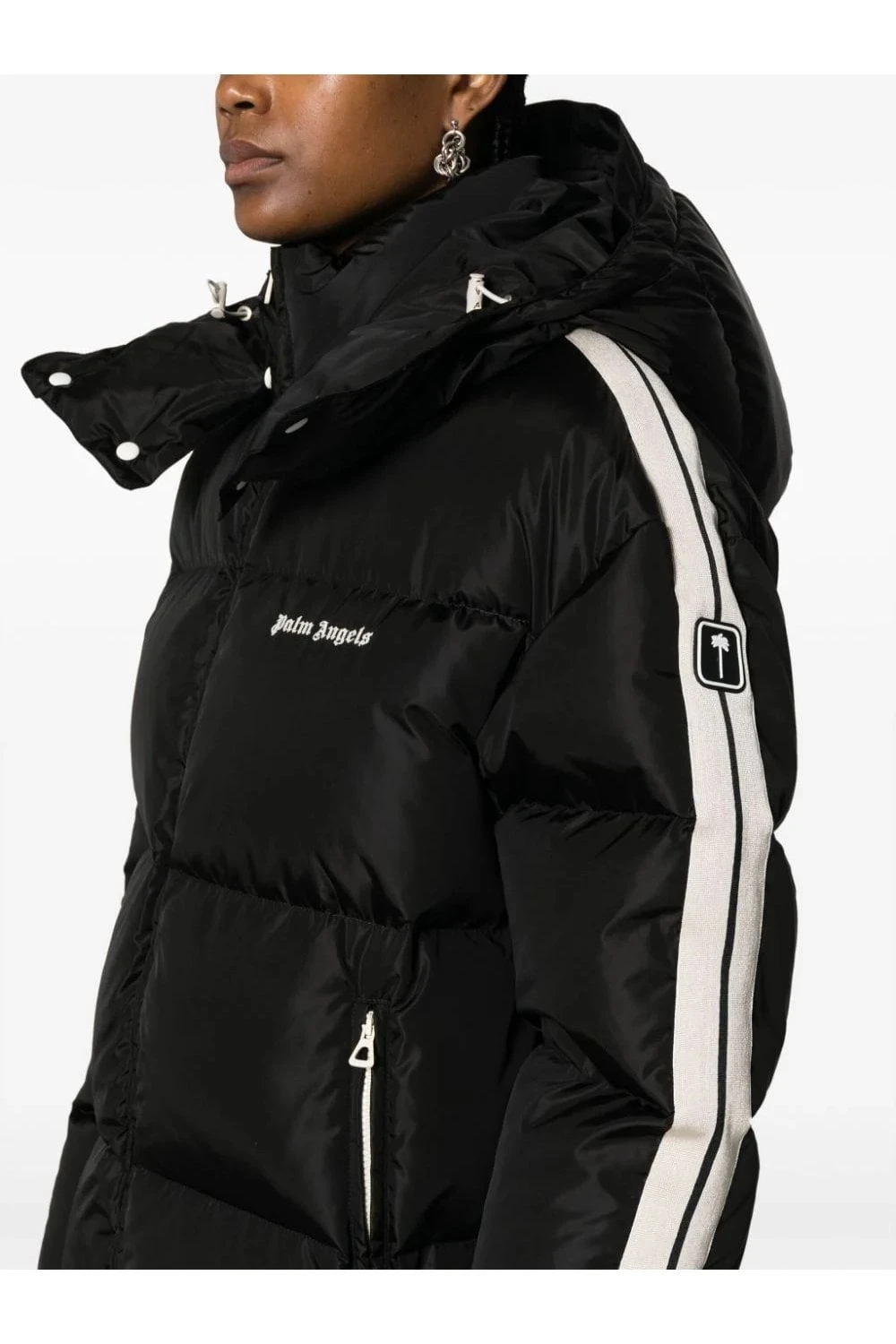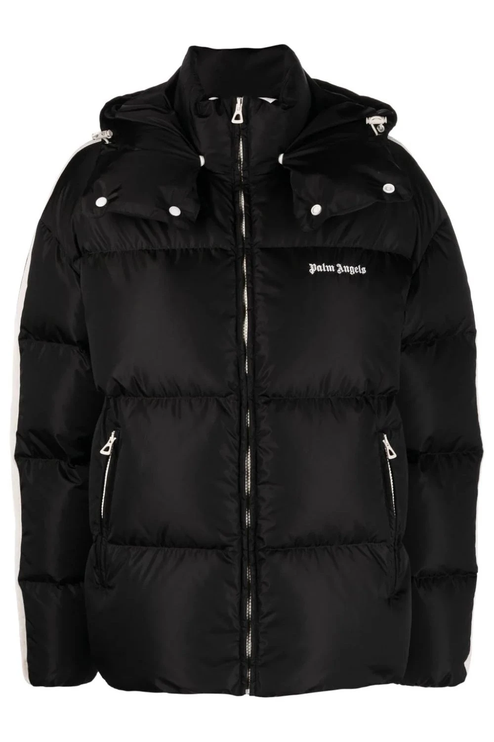 Named and modelled after its staple sport jackets, this black Palm Angels Track puffer features all the hallmarks of the archetypal design – from the logo embroidery at the chest to the webbing stripes at the sleeves. It’s kitted with a detachable hood and appliqued with a rubberised palm tree at the arm that nods to the label’s California inspirations