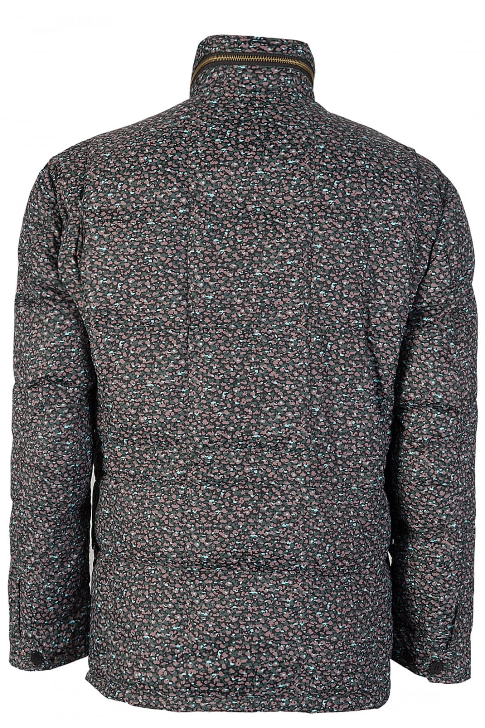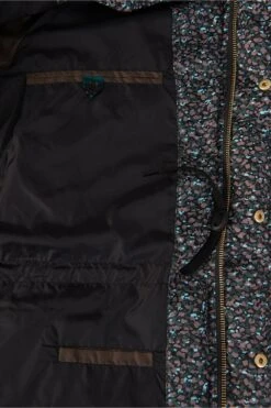 Paul Smith Navy Stippled Colour Print Field Jacket with a combination of gold-tone hardware a riri zip and popper fastening, with interior drawstring adjustable waistband and a concealed hood with zip fastening, with four popper fastening flap pockets, two zip fastening chest pockets, interior button fastening chest pocket.