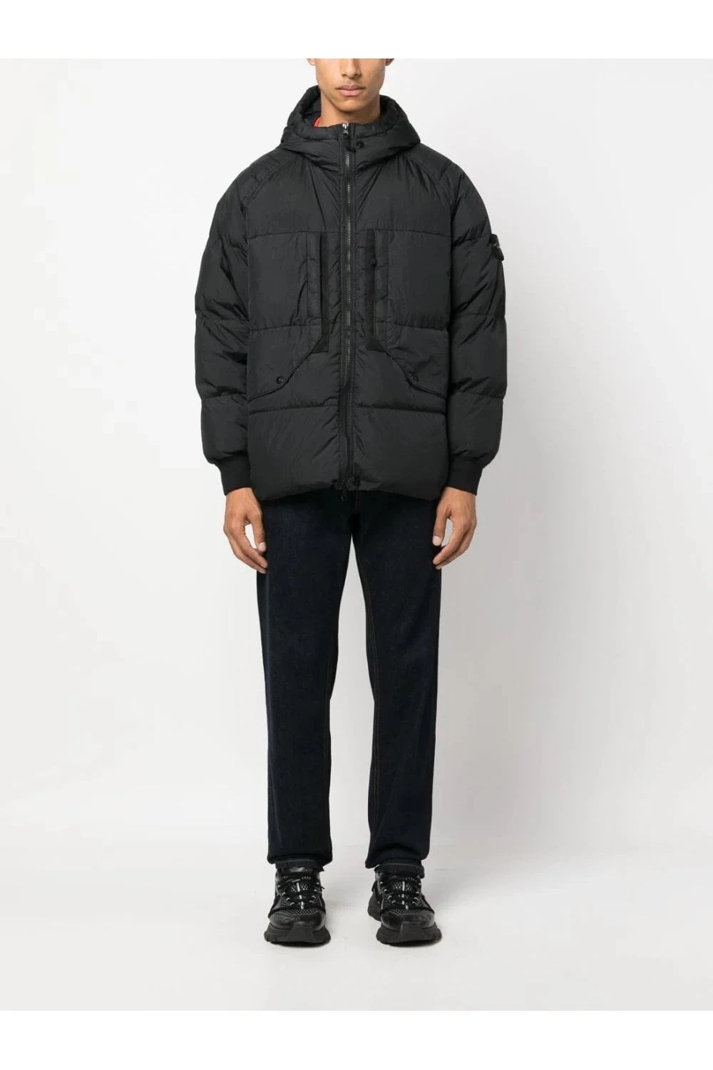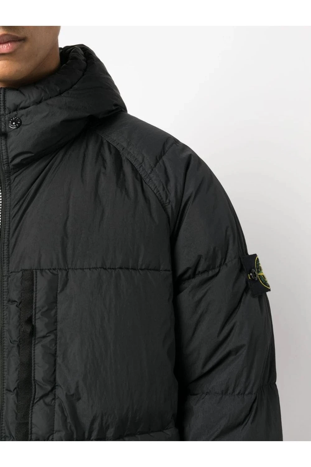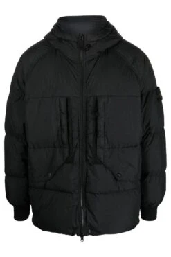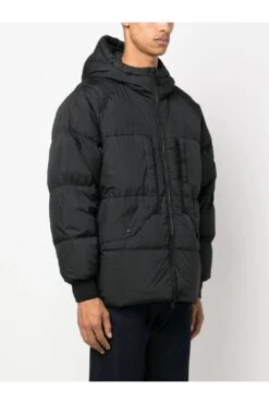 Style your winter looks effortlessly with this black jacket from STONE ISLAND. It’s made from the brand’s signature Crinkle Reps material – a lightweight nylon that’s both wind and water resistant then filled with down for optimum warmth. The jacket features a classic hood, front zip fastening, two side zip fastening pockets and the signature detachable Compass motif