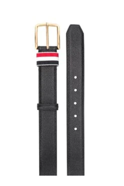 It’s a universal truth that accessories make the outfit. This black calf leather striped loop pebbled belt from Thom Browne, however, will make your whole day. Treat yourself. Featuring a pebbled leather texture, a front buckle fastening, gold-tone hardware, a pointed tip, punch hole detailing and stitching details.