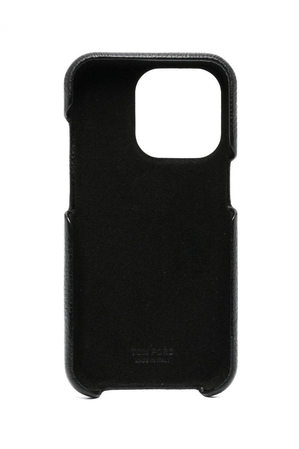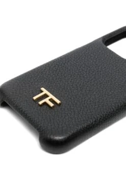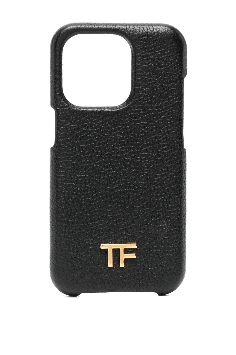 This IPhone 14 Pro case is an instantly TOM FORD accessory thanks to the gold-tone logo plaque on the front. Its crafted from black calf leather in a grained effect, adding a texturised finish to the item