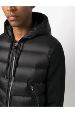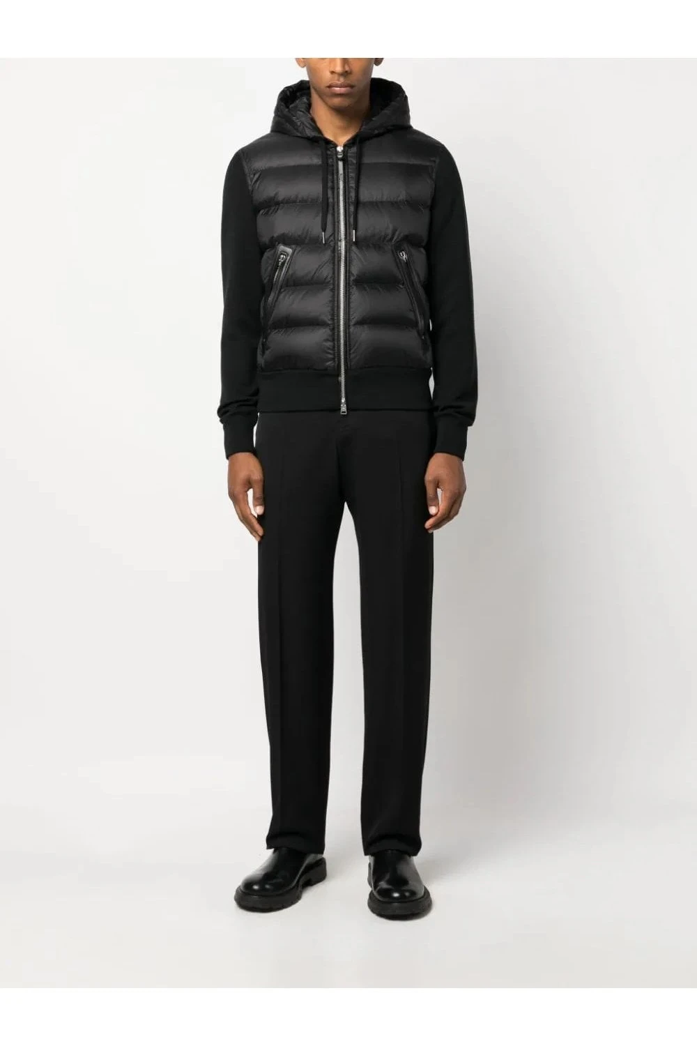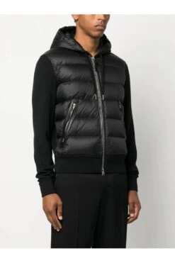 TOM FORD takes a sporty approach to design with this panelled hooded jacket. Rendered in black, it features a padded bodice for extra warmth