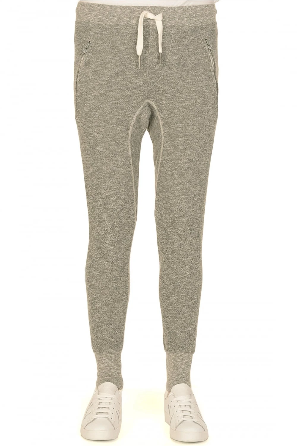 True Religion ‘Pure’ Sweatpants in grey marl, featuring a drawstring waistband and dip crotch style with a soft touch fabric. Extra details include two side pockets and one back pocket all complete with the horseshoe logo zip fastening, as well as wide band cuffs. Pair these joggers with a basic tee for ultimate comfort.