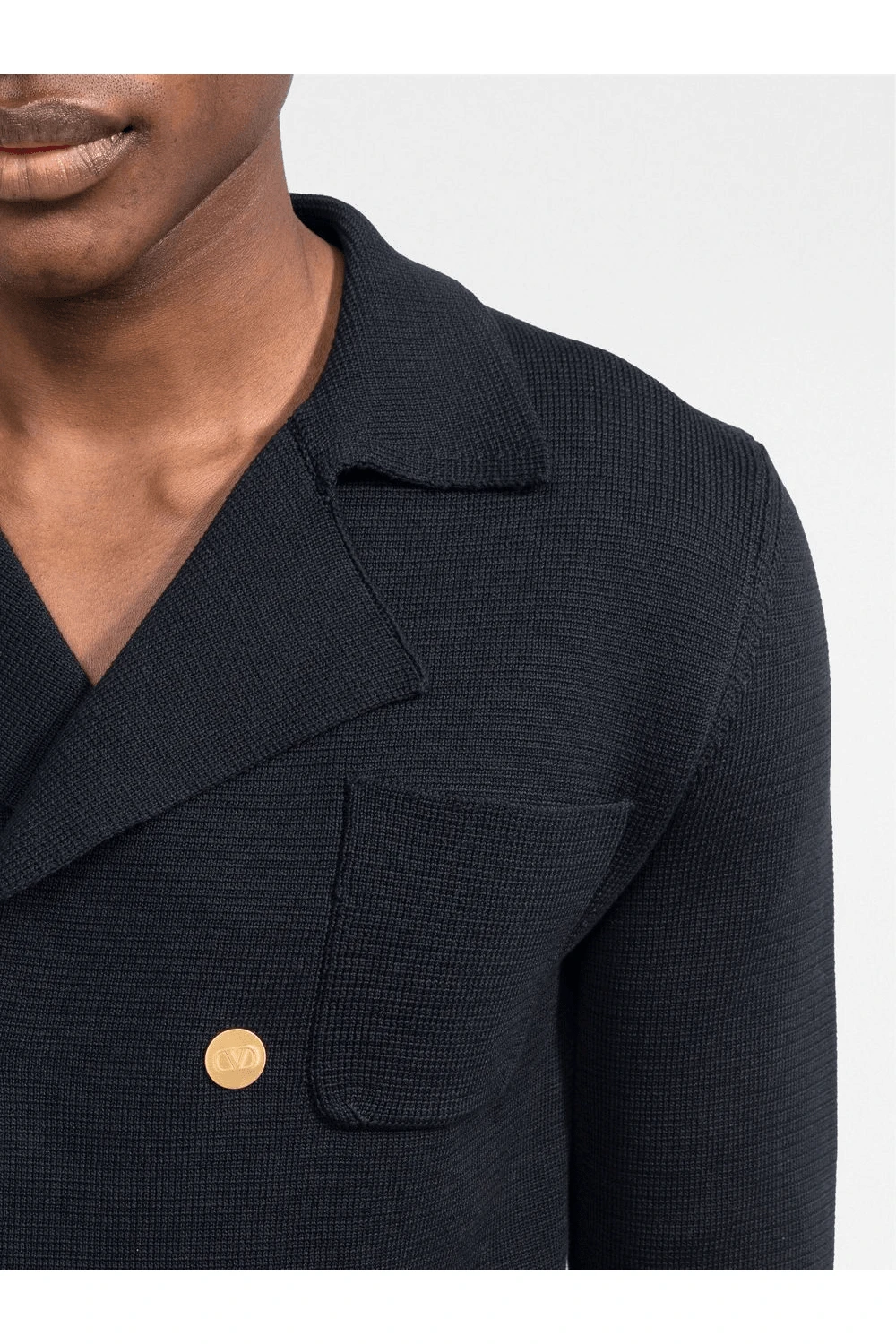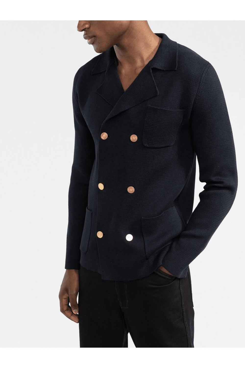 ·        V-logo jewel button fastening