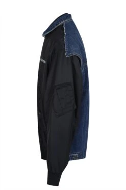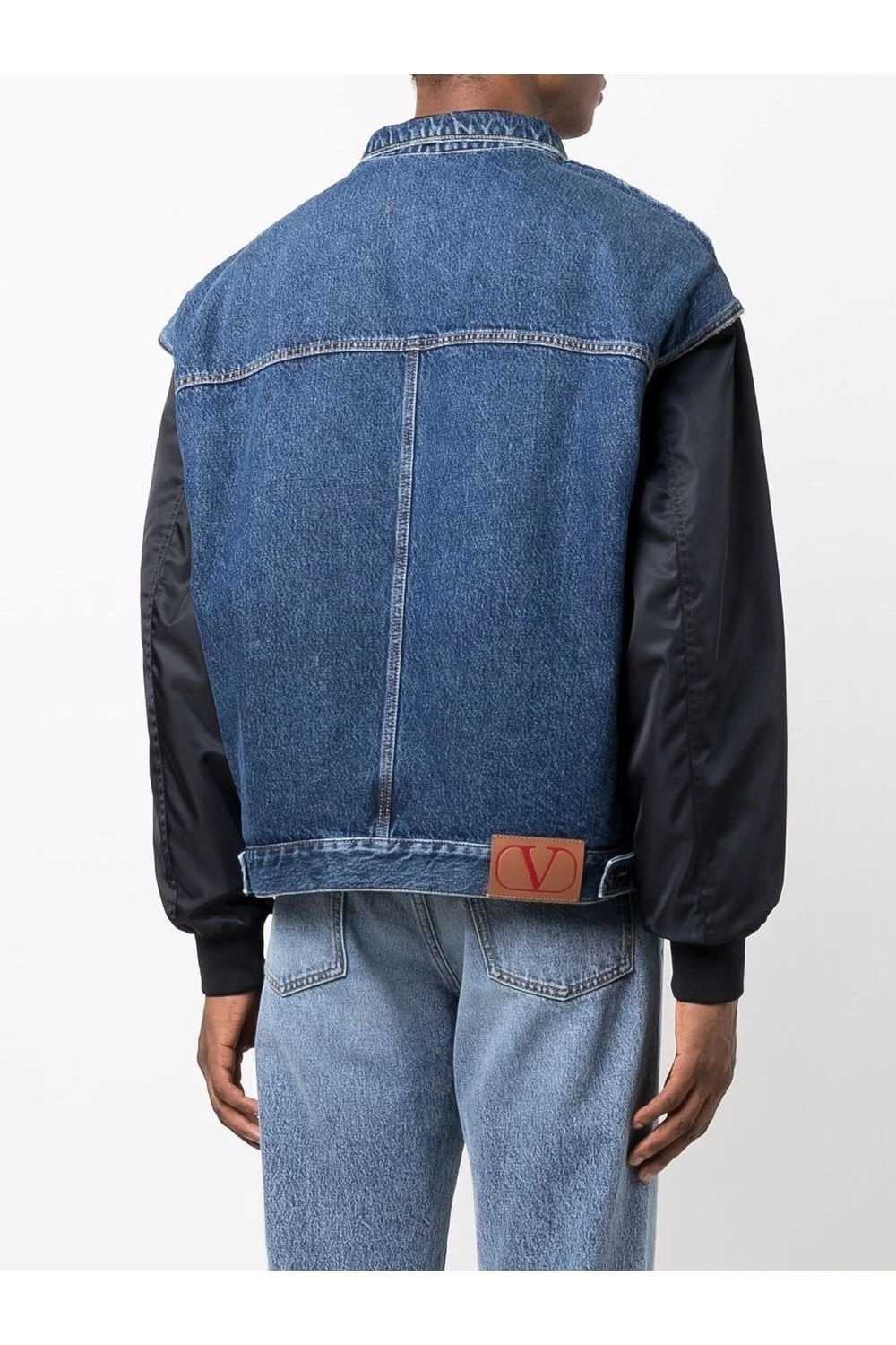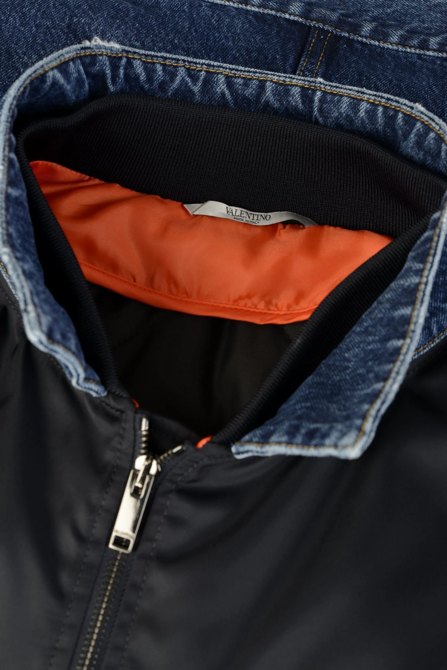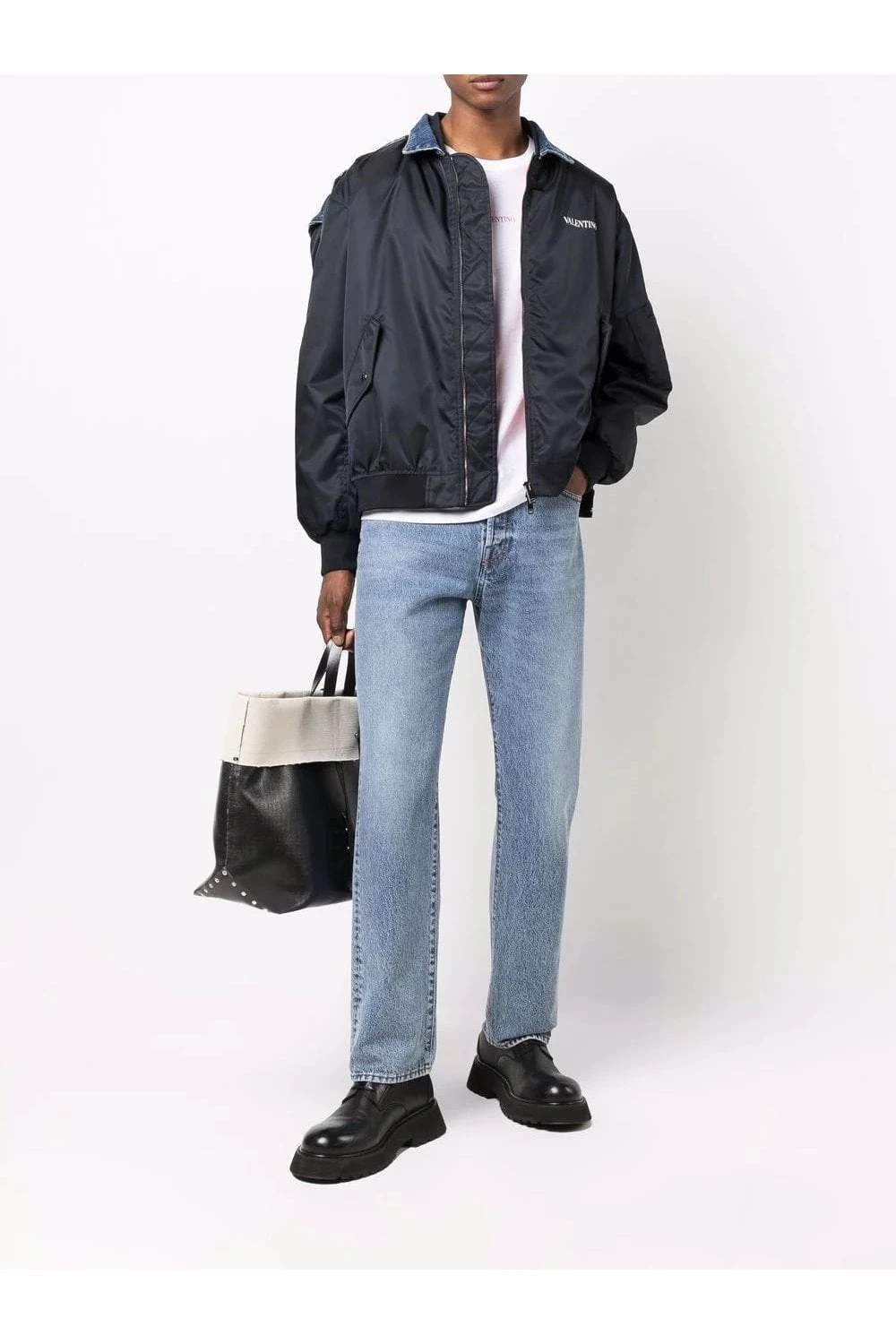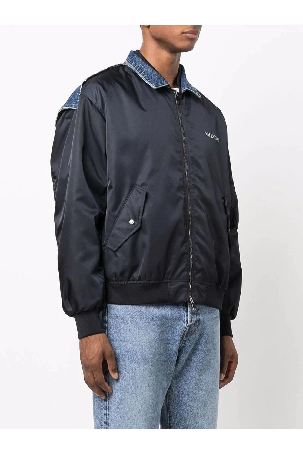 Founded in 1960, Valentino is all about timeless and impeccable style. A fine example of that is this blue bomber jacket, featuring a mix of nylon and denim and detailed with the brand’s logo o the chest.